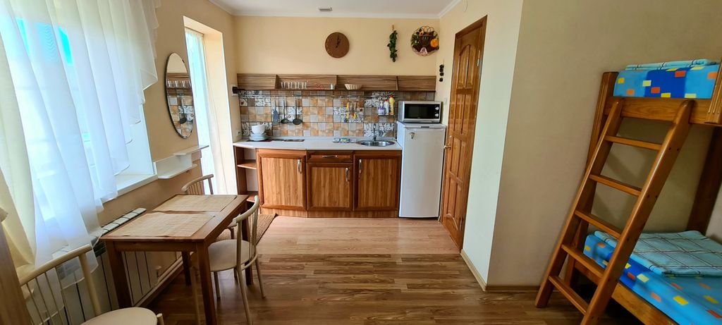 Гостевой дом «Виктория» расположен в одном из самых удобных для отдыха районов города Ейска, на пересечении улиц Гоголя и Морской, в 150 м от Азовского моря. Очень тихий и спокойный район, рядом вся развлекательная инфраструктура: Таганрогская набережная, прогулочные аллеи, детские аттракционы, дельфинарий, океанариум, столовые и кафе, магазины, парк отдыха им. И. М. Поддубного. Номерной фонд – 5 двухкомнатных номеров класса полулюкс. Все номера изолированы друг от друга, с отдельным входом и приусадебным участком, выполнены в евро-стиле со всеми удобствами и сочетают в себе современный стиль и комфорт. Полностью оборудованные ванные комнаты в номерах (душевая кабина, унитаз, раковина), укомплектованы всеми необходимыми косметическими и гигиеническими средствами. Для благоприятного и уютного проживания гостей номера снабжены климатическими установками (настенные сплит-системы), удобными кроватями, современной мебелью, телевизорами, холодильниками, интернетом Wi-Fi. Горячая и холодна