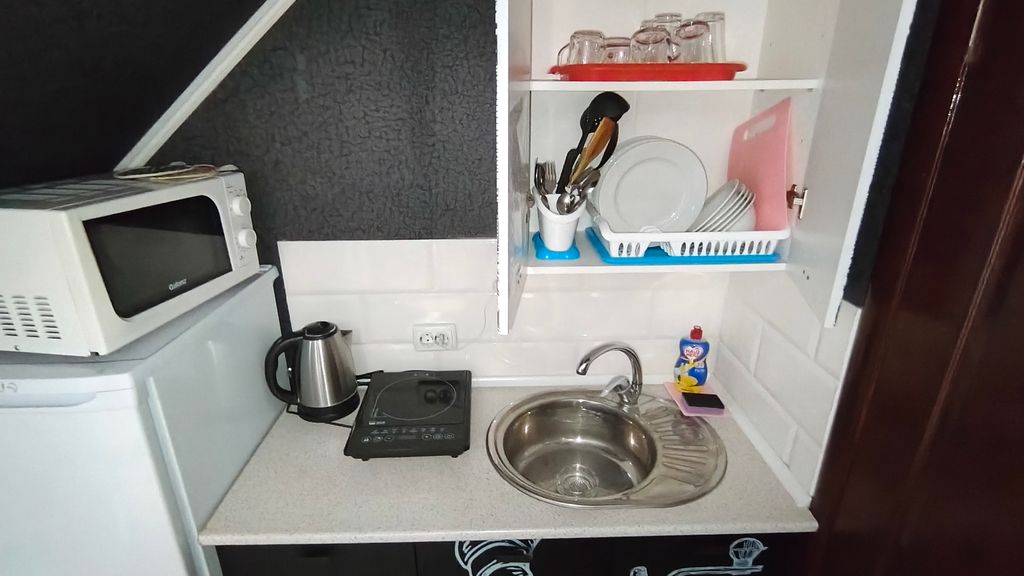 Гостевой дом «Хельга у моря». Уютные дизайнерские номера. Кухня в каждом номере со всей необходимой посудой и микроволновкой, кондиционер, ТВ-плазма, общая стиральная машинка-автомат, гладильная доска, утюг, бесплатный Wi-Fi. До моря 1 минута ходьбы и лучшего в городе песчаного пляжа «Оазис» и «Солярис». Есть парковка для автомобилей. В 20 метрах продуктовый магазин, развитая инфраструктура, центральный рынок. Рядом в 50 метрах ресторан «Корсар», кафе «Марио». Также в 3-х минутах от дома находится отель «Риберра», где можно пройти спа-процедуры. До набережной им. Терешковой и исторической части города 5 минут пешком, пешеходный исторический маршрут «Малый Иерусалим», караимские кенасы, кафе-театр «Мустафа», музеи, ресторанчики, кафе, выставки, уличная торговля сувенирами и т. д. Культурно-этнографический центр «Одун-базар къапусы», часть средневековой крепостной стены конца XV века, этнографический музей с макетом средневекового города, кофейню «Кезлев къавеси», этно-ресторан «Д