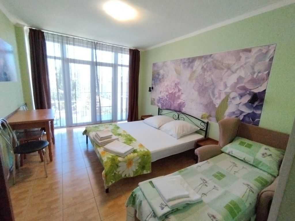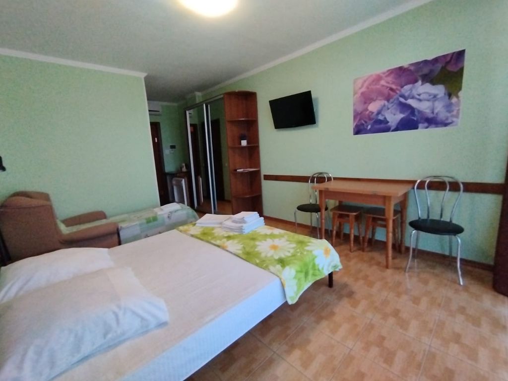 Гостинный двор расположен недалеко от моря (8–10 мин. прогулочным шагом до пляжа (550 м). На территории есть бассейн, который работает с мая (подогрев) по сентябрь включительно. Для развлечения гостей есть настольный теннис, песочница для детей, качеля-лавочка. Предоставляются мангалы для шашлыка. В номере есть холодильник, кондиционер, телевизор, Wi-Fi, минимальный набор посуды, постельное, полотенца, фен, жидкое мыло. На первом этаже выход во двор. 2-й и 3-й этаж оснащены балконами. Курение разрешено на внешнем дворе. Недалеко (10 мин) есть платный теннисный корт. Мы можем помочь в организации индивидуальных экскурсий. Заказать такси из аэропорта или по требованию.