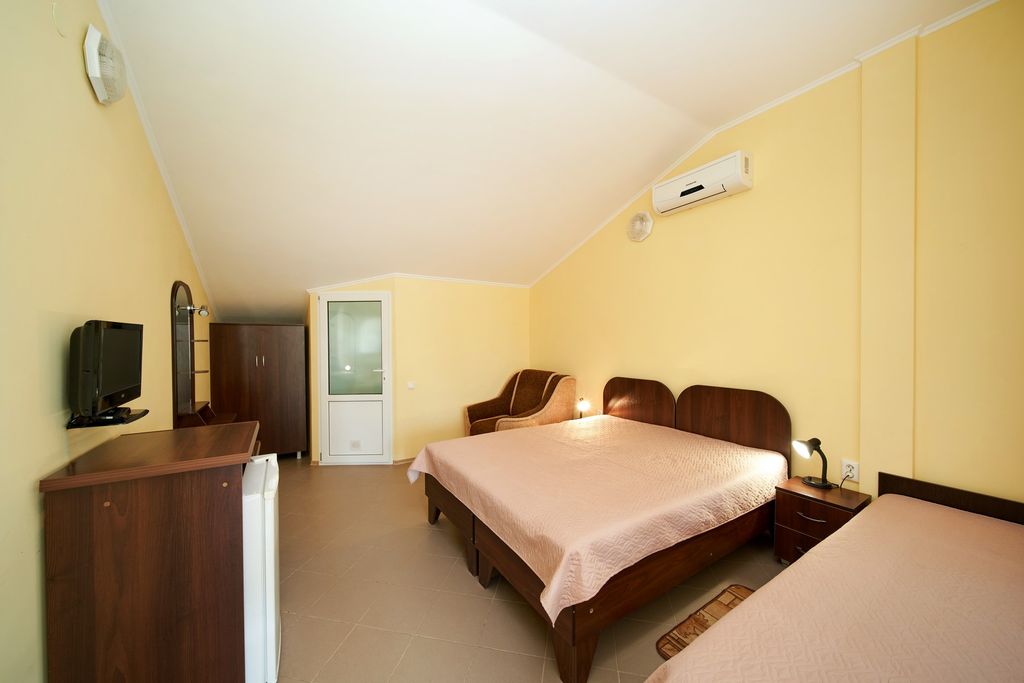 Лучшие пляжи Евпатории: «Лазурный берег» и «Супераква» расположены рядом, 15 минут ходьбы. Доставка на пляж «Супераква» 2 раза в день бесплатно. Гостевой дом «Гринвич» — прекрасное место для семейного отдыха с детьми! Деток у нас всегда много, разных возрастов, им есть чем заняться: для малышей есть прекрасная игровая комната, площадка с песочницей и горкой, дети постарше очень любят батут и бассейн. Аниматор 6 дней в неделю устраивает мероприятия с детьми и взрослыми, и становится им хорошим другом. На май и июнь 2024 года акция на проживание в стандартах - проживание до 4 человек по цене одноместного размещения, всего 2600 рублей в сутки