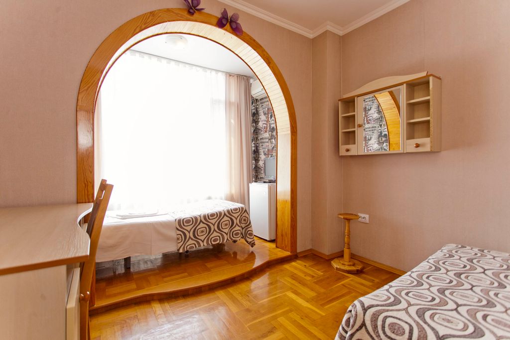 Недорогой и комфортный отдых на лучшем курорте России. Мини-гостиница расположена в центральной части города, в зелёном спальном районе курорта. К услугам наших гостей — 2-местные номера с одним доп. местом «стандарт». Все комнаты светлые, комфортабельные. Номер «семейный люкс» располагается на 3-м этаже, состоит из трёх изолированных комнат и вмещает 6–7 человек. В личном пользовании — кухня, балкон, душ, сан. узел и отдельный вход. Во дворе имеется зона отдыха. Безопасность гарантирована. Автостоянка: 3 авто перед зданием (бесплатно). Питание: две кухни, оборудованные всем необходимым (самостоятельно) + организованное платное питание по желанию (вкусное и недорогое). Расстояния: пляж песчаный — 15 мин., набережная — 20 мин., центр развлечений — 10 мин., аквапарк — 15 мин., рынок — 10 мин., магазин продуктов — 5 мин. К вашим услугам (дополнительно): трансфер (платно), стиральная машина (платно), сейф, мангал + зона отдыха во дворе, гладильная доска + утюг, СВЧ, дегустация вин, Wi-Fi.