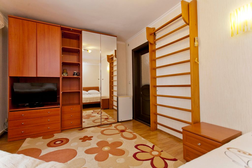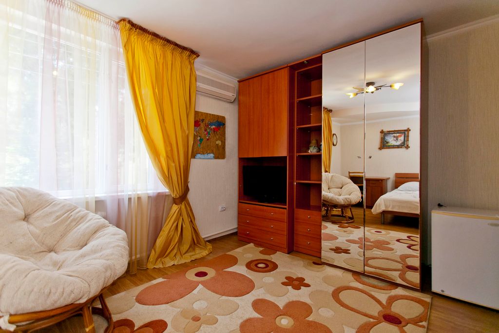 Недорогой и комфортный отдых на лучшем курорте России. Мини-гостиница расположена в центральной части города, в зелёном спальном районе курорта. К услугам наших гостей — 2-местные номера с одним доп. местом «стандарт». Все комнаты светлые, комфортабельные. Номер «семейный люкс» располагается на 3-м этаже, состоит из трёх изолированных комнат и вмещает 6–7 человек. В личном пользовании — кухня, балкон, душ, сан. узел и отдельный вход. Во дворе имеется зона отдыха. Безопасность гарантирована. Автостоянка: 3 авто перед зданием (бесплатно). Питание: две кухни, оборудованные всем необходимым (самостоятельно) + организованное платное питание по желанию (вкусное и недорогое). Расстояния: пляж песчаный — 15 мин., набережная — 20 мин., центр развлечений — 10 мин., аквапарк — 15 мин., рынок — 10 мин., магазин продуктов — 5 мин. К вашим услугам (дополнительно): трансфер (платно), стиральная машина (платно), сейф, мангал + зона отдыха во дворе, гладильная доска + утюг, СВЧ, дегустация вин, Wi-Fi.