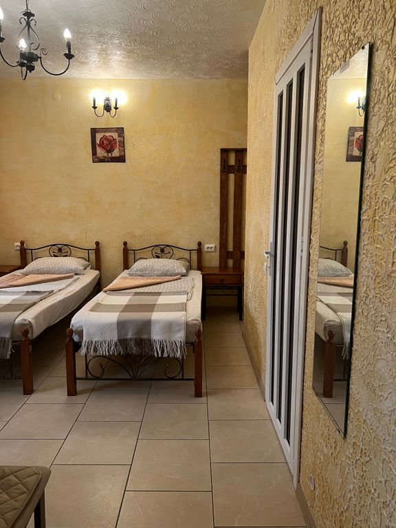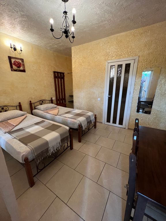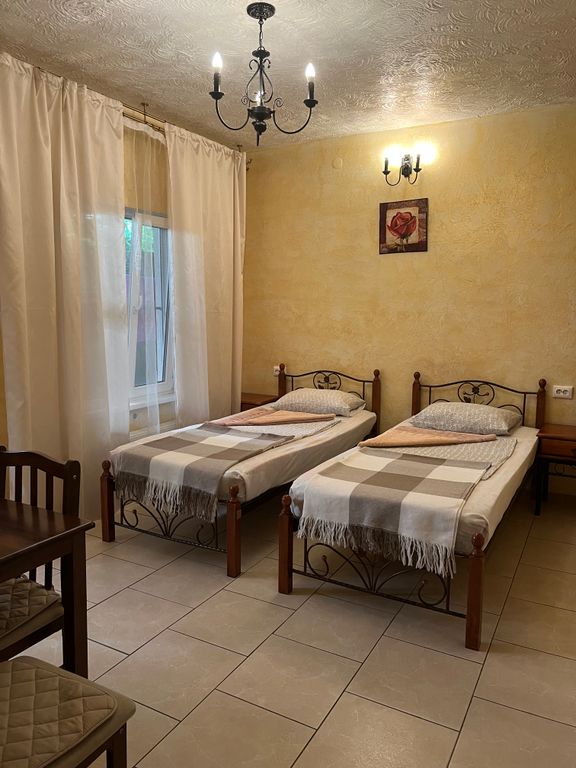 Уютная мини-гостиница с панорамной крышей. Тихая улица в окружении сосен, рядом с центром города, 10 минут до набережной прогулочным шагом. 1. Двухместный номер категории стандарт, сплит-система, холодильник. Кровать двухспальная или две раздельные кровати, на ваш выбор. 16 кв. М. 2. Четырёхместный номер, двуспальная кровать + две раздельные или две двуспальные кровати, телевизор, холодильник, кондиционер, 24 кв. М. Разделен на зоны. Предоставляется возможность доп. Места на раскладушке - 500 р. Есть детская кроватка-манеж, для малышей. На этаже кухня, стиральная машинка, гладильная доска. Работает вайфай. На крыше с видом на море и горы располагается открытая зона отдыха для загара с шезлонгами и столиками, крытая мангальная зона отдыха с принадлежностями барбекю, с большими столами и скамейками. Есть парковка для автомобиля. Рядом находятся продуктовый магазин, кафе быстрого питания, парикмахерские, автобусная остановка.