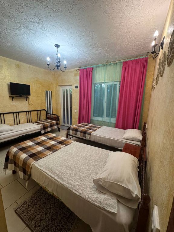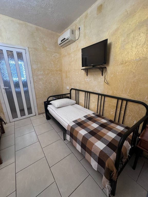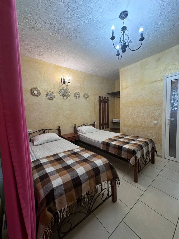 Уютная мини-гостиница с панорамной крышей. Тихая улица в окружении сосен, рядом с центром города, 10 минут до набережной прогулочным шагом. 1. Двухместный номер категории стандарт, сплит-система, холодильник. Кровать двухспальная или две раздельные кровати, на ваш выбор. 16 кв. М. 2. Четырёхместный номер, двуспальная кровать + две раздельные или две двуспальные кровати, телевизор, холодильник, кондиционер, 24 кв. М. Разделен на зоны. Предоставляется возможность доп. Места на раскладушке - 500 р. Есть детская кроватка-манеж, для малышей. На этаже кухня, стиральная машинка, гладильная доска. Работает вайфай. На крыше с видом на море и горы располагается открытая зона отдыха для загара с шезлонгами и столиками, крытая мангальная зона отдыха с принадлежностями барбекю, с большими столами и скамейками. Есть парковка для автомобиля. Рядом находятся продуктовый магазин, кафе быстрого питания, парикмахерские, автобусная остановка.