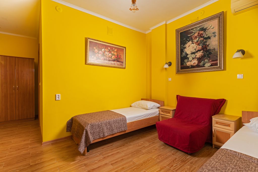 В центре города, на тихой и уютной улице, в частном секторе, в 7 минутах ходьбы спокойным шагом до городского песчаного пляжа, располагается средство размещения «отдых у александра». Мы предлагаем вашему вниманию комнаты с удобствами различных категорий. В комнатах сделан современный ремонт. Во всех комнатах имеются сейфы. Wi-fi интернет (бесплатно). Подача горячей и холодной воды круглые сутки. Территория огорожена, находится под видео наблюдением и охраняется. Имеется стоянка для личного автотранспорта. Хозяева проживают на территории. Рядом с нами на расстоянии 250 метров находится частная мини – столовая, предлагающая хороший ассортимент блюд по доступной цене. А если вы предпочитаете домашнюю пищу, то у нас имеются кухни для самостоятельного приготовления блюд. Рынок, рестораны, клубы, кинотеатры, аттракционы, бильярдные - все развлечения города находятся на расстоянии 15 минут неторопливым шагом от нас. Неподалеку находится теннисный корт, добраться до которого вы сможете за 1