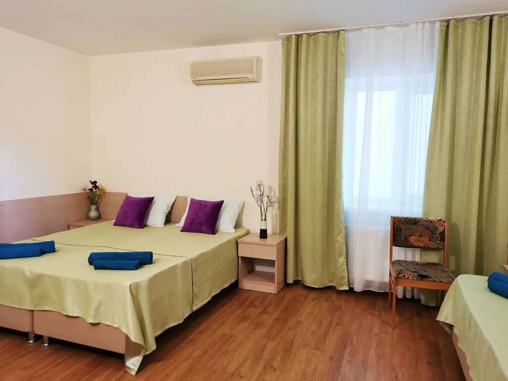 Гостевой дом «Розовая пантера» предоставляет возможность бронирования только через сайт. Оформите бронь с помощью кнопки «Забронировать». Приглашаем вас в гостевой дом «Розовая пантера». Находится в центральной курортной части Анапы, на Шевченко 35/Черноморская 43. До моря 10-15 минут пешком. В шаговой доступности песчаный и галечный пляж. В 10 минутах находятся Театральная площадь, парк отдыха и развлечений с аттракционами, набережная, летняя эстрада, аквапарк. Размещение: К вашим услугам предлагается 11 комфортабельных комнат (с индивидуальным санузлом с душем и туалетом, сплит-системой, холодильником и телевизором) и апартаменты (две комнаты + собственная кухня). В любой комнате возможно организовать дополнительное место. На территории дома есть Wi-Fi. Территория: Благоустроенный двор с зоной отдыха со столиками, бассейн (каркасный 400*200*122 см), для любителей шашлыка — мангал. Питание: На первом этаже расположена кухня для самостоятельного приготовления пищи. Ограничения: