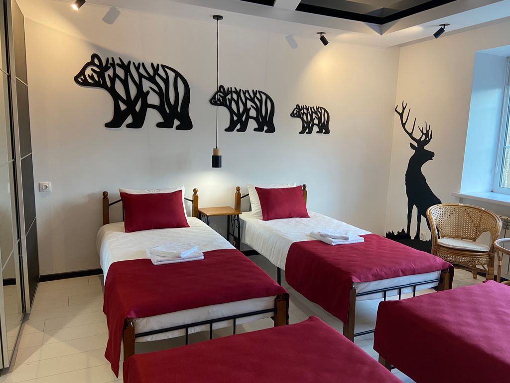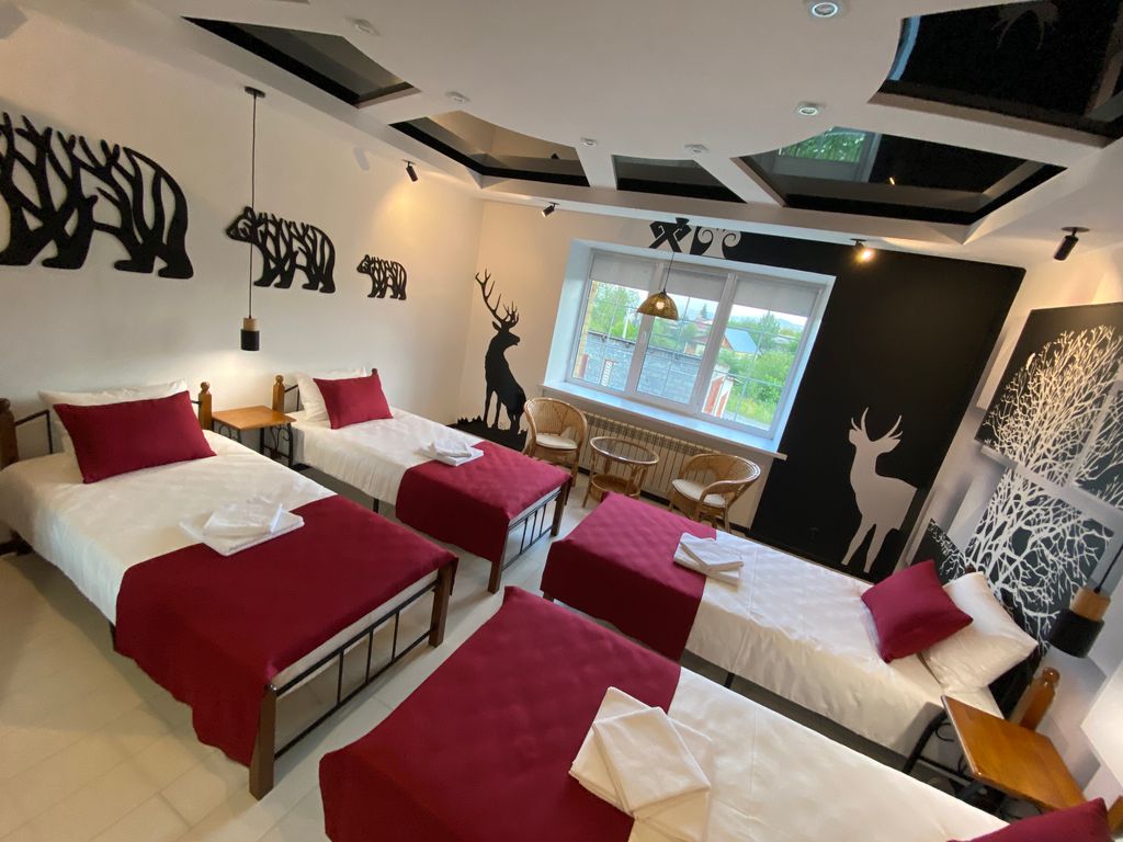 Добро пожаловать в гостевой дом «Гестехаус». Наш дом находится в переулке имени Героя Советского союза Дмитрия Камзаракова. Переулок является лучшим переулком Горно-Алтайска, по оценке администрации города, на протяжении уже нескольких лет и расположен в живописном районе «Баят» на склоне горы «Тугая». Гостевой дом стилизован под фахверк, аутентичность в сочетании с современной внутренней отделкой и техническим оснащением помещений приятно удивят вас! Небольшой номерной фонд гарантирует нашим гостям домашнюю и уютную атмосферу. В доме всего 4 номера: два двухместных номера, один из которых с раздельными кроватями, другой с двуспальной кроватью из массива дерева в комнате с камином; трёхместный номер «Китайский дракон» с тремя кроватями и четырёхместный номер «…тот самый, с мишками» с четырьмя раздельными кроватями. На четыре номера есть кухня-столовая, оборудованная всем необходимым для приготовления, хранения и принятия пищи; два туалета один из которых совмещён с душевой. В стоимост