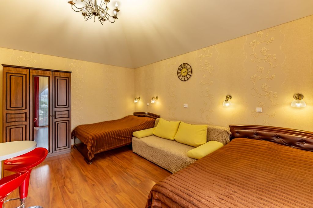 Гостевой дом "Домашний уют" находится в замечательном городе - курорте Геленджике. Две минуты неспешной ходьбы отделяют гостей от центрального городского пляжа, знаменитой набережной и парка развлечений. Здесь вас ждет приятная аура домашнего уюта. Утопающая в зелени открытая терраса, наполненная ароматами цветов и экзотических растений, располагает к спокойному семейному отдыху. У нас вы найдете радушный прием и комфортные номера различной ценовой категории. Детская площадка порадует малышей. А теннисный стол и настольные игры не дадут скучать взрослым. Оборудованная общая кухня, где можно приготовить любимые блюда, столики на свежем воздухе создают неповторимую атмосферу, которую возможно создать только в небольших частных отелях. На территории отеля бесплатный WI- FI, видеонаблюдение, закрытый двор. Все это сочетается с невысокой стоимостью проживания и отличным местоположением.