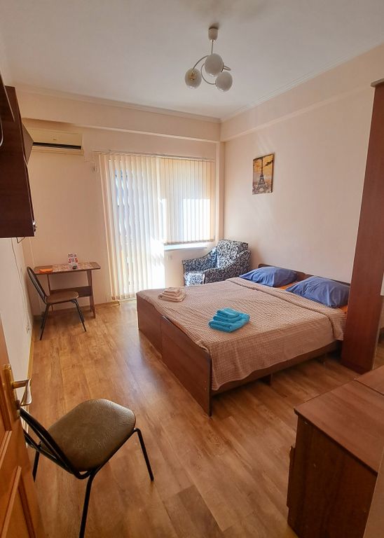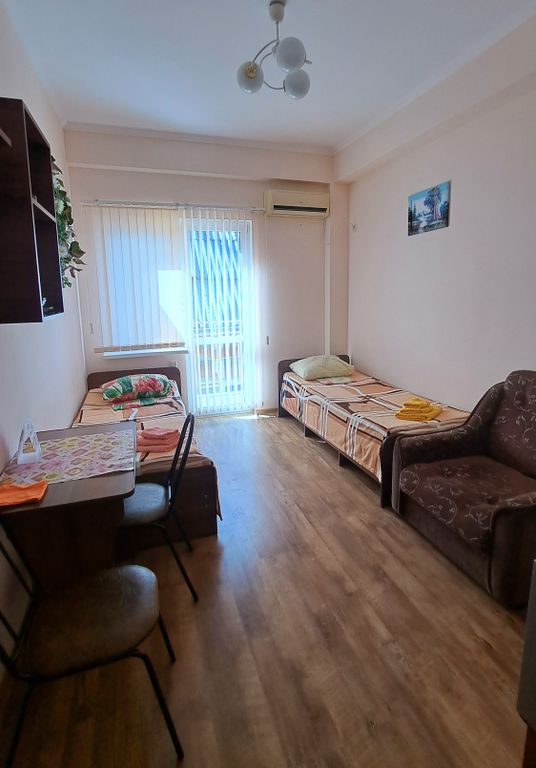 Объект расположен очень удобно. Развитая инфраструктура. Море находится на расстоянии 300 метров. Шаговая доступность ко все объектам развлечения. Дельфинарий. Океанарий. Пингвинарий. Минипарк. Аквапарк. К этим развлечениям дойти 5 минут. Рядом магазины разной направленности. В отеле есть магазин "Белорусские продукты". Рядом: "Пятерочка", "Магнит", "Красное и белое". Торговый центр "Бирюза" находится так же очень близко. Где не только разные магазины, но и детский развлекательный центр "Бирюзайка", Бургер кинг, аптека, банкоматы многих банков России. Прямо у объекта расположена автобусная остановка городская, удобно добраться в любую точку города. Рядом экскурсионное бюро и магазинчики "Все для отдыха". Пляж мелкогалечный, 3-5 минут ходьбы. Очень удобный подход к пляжу. В отеле предоставлены все возможности для удобного проживания. В каждом номере есть набор посуды. Есть кухня общего пользования, где можно пригото