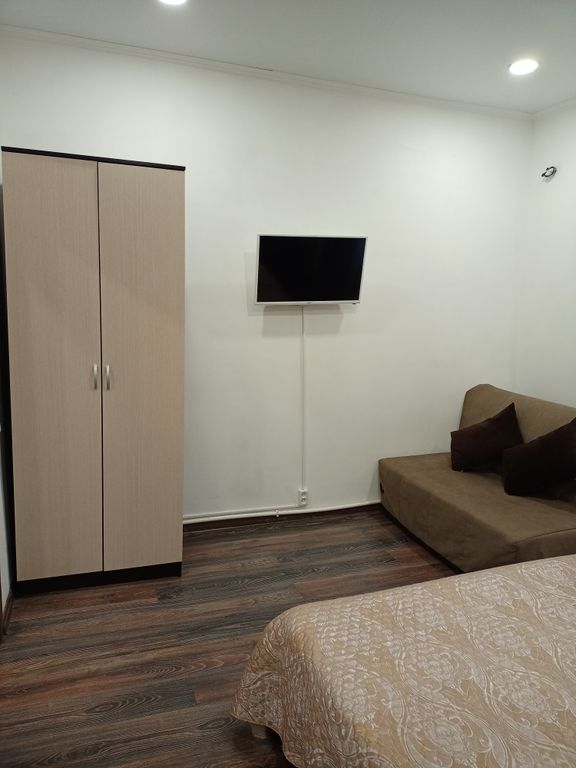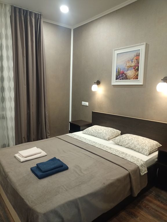 Это новый трехэтажный дом, расположенный в центральной части города Геленджика, на тихой улочке. Дом построен в 2019 году. Имеется внутренний двор, зона отдыха. Около дома бесплатная парковка, до бесплатного песчаного пляжа 10 минут пешком, 20 минут до галечных пляжей Толстого мыса. В пешей доступности все необходимое для комфортной жизни (гипермаркет "Магнит", аптеки, детские площадки, парк аттракционов, общественный транспорт, столовые, кафе, рестораны). Для гостей предоставляются 2-х, 3-х ,4-х местные апартаменты со своей кухней, общей площадью 23-25м2. В каждом номере большая двуспальная кровать, шкаф для одежды, кухня, оборудованная всем необходимым, холодильник, обеденный стол, жк телевизор, кондиционер, санузел (душевая, умывальник, фен), стиральные машины и гладильная доска с утюгом предоставляются бесплатно в хоз. комнате. Смена белья по требованию, уборка за дополнительную плату. На территории есть зоны отдыха, садовая мебель, садовые качели, мангал, детский ба