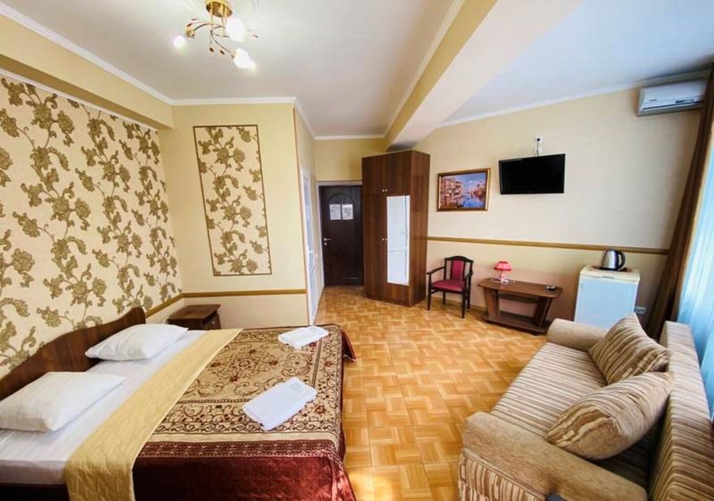 Гостевой дом «София» расположен у горной реки Псезуапсе поселка Лазаревское. От гостевого дома по прямой асфальтированной дороге, мимо сувенирных лавок, в 15−20 минутах ходьбы до моря расположен пляж «Багратион» и «Лазаревское взморье». (На такси от 200 р. 5-10 мин. на любой пляж.) В шаговой доступности горная речка Псезуапсе, а также новая речная прогулочная набережная. В 5 минутах ходьбы находится аквапарк «Наутилус», рынок и сетевой супермаркет. В 10 минутах ходьбы расположена центральная площадь поющих фонтанов, концертный зал и большой крытый центральный рынок. В доме имеется двор с фонтаном, композитным бассейном (с подогревом) с подсветкой, размером 8,5×4,0×1,5 м, шезлонги, небольшое количество столов, а также цветами и экзотическими растениями. Имеется бильярд. Настольный теннис. Дартс. На территории гостиницы имеется бесплатная автостоянка перед домом, интернет Wi-Fi по всей территории. Небольшая кухонная зона во внутреннем дворике в беседке для приготовления легких блюд (2-ко