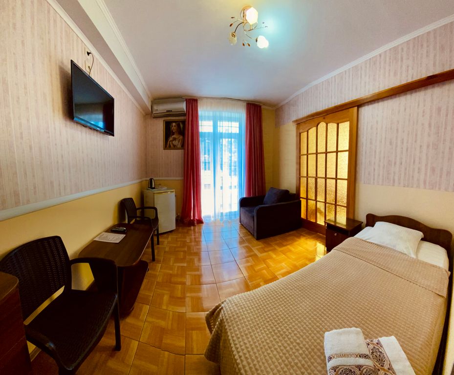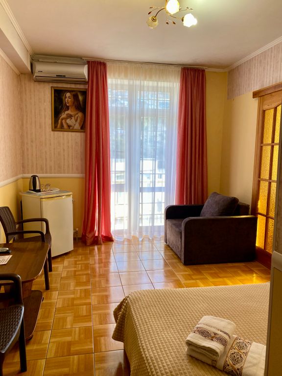 Гостевой дом «София» расположен у горной реки Псезуапсе поселка Лазаревское. От гостевого дома по прямой асфальтированной дороге, мимо сувенирных лавок, в 15−20 минутах ходьбы до моря расположен пляж «Багратион» и «Лазаревское взморье». (На такси от 200 р. 5-10 мин. на любой пляж.) В шаговой доступности горная речка Псезуапсе, а также новая речная прогулочная набережная. В 5 минутах ходьбы находится аквапарк «Наутилус», рынок и сетевой супермаркет. В 10 минутах ходьбы расположена центральная площадь поющих фонтанов, концертный зал и большой крытый центральный рынок. В доме имеется двор с фонтаном, композитным бассейном (с подогревом) с подсветкой, размером 8,5×4,0×1,5 м, шезлонги, небольшое количество столов, а также цветами и экзотическими растениями. Имеется бильярд. Настольный теннис. Дартс. На территории гостиницы имеется бесплатная автостоянка перед домом, интернет Wi-Fi по всей территории. Небольшая кухонная зона во внутреннем дворике в беседке для приготовления легких блюд (2-ко