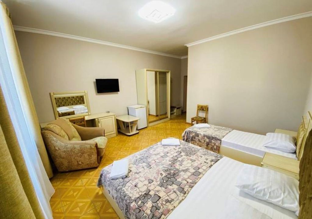 Гостевой дом «София» расположен у горной реки Псезуапсе поселка Лазаревское. От гостевого дома по прямой асфальтированной дороге, мимо сувенирных лавок, в 15−20 минутах ходьбы до моря расположен пляж «Багратион» и «Лазаревское взморье». (На такси от 200 р. 5-10 мин. на любой пляж.) В шаговой доступности горная речка Псезуапсе, а также новая речная прогулочная набережная. В 5 минутах ходьбы находится аквапарк «Наутилус», рынок и сетевой супермаркет. В 10 минутах ходьбы расположена центральная площадь поющих фонтанов, концертный зал и большой крытый центральный рынок. В доме имеется двор с фонтаном, композитным бассейном (с подогревом) с подсветкой, размером 8,5×4,0×1,5 м, шезлонги, небольшое количество столов, а также цветами и экзотическими растениями. Имеется бильярд. Настольный теннис. Дартс. На территории гостиницы имеется бесплатная автостоянка перед домом, интернет Wi-Fi по всей территории. Небольшая кухонная зона во внутреннем дворике в беседке для приготовления легких блюд (2-ко
