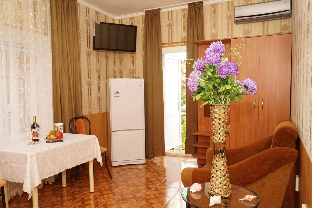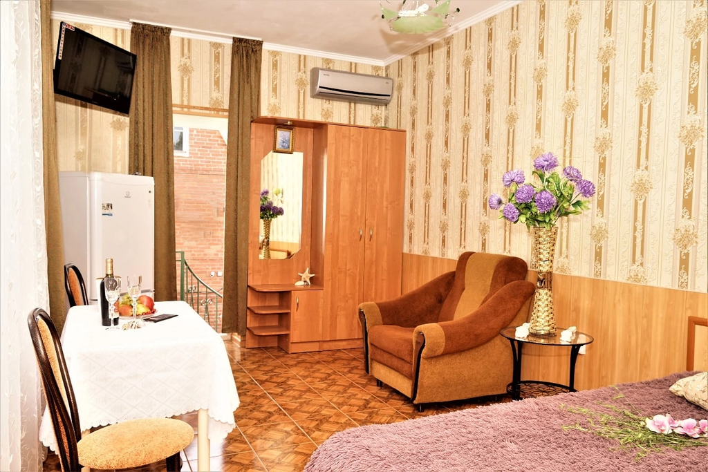 Гостевой дом "Элис" - удобно располагается в самом центре Анапы на улице Шевченко д. 92. Наш объект - семейного уровня состоит из оборудованной кухни для самостоятельного приготовления пищи, уютного озелененного дворика, где вы можете отдохнуть от суеты улиц! Сам дом, территория, комнаты – все сделано с любовью и все продумано до мелочей! Мы находимся довольно близко от моря – 11-16 минут ходьбы спокойным шагом по улицам нашего курорта - и вы на песчаном пляже черного моря. Столько же времени вам понадобится, чтобы добраться до набережной, где расположены кафе, дискотеки под открытым небом, рестораны, большой парк со множеством аттракционов, но в то же время отдаленность от громкой музыки – все это создает положительное впечатление от комфортного отдыха в нашем гостевом доме в анапе Алкоголь/фрукты доп. услуга заказывается и оплачивается заранее.