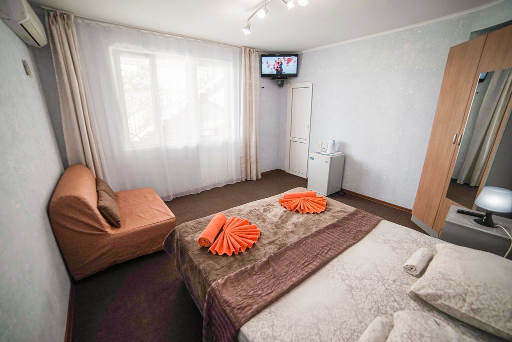 Гостевой дом находится в городе-курорте Анапа. Это - современное 3-х этажное здание с бассейном, построенное в 2009 году, а в 2022 - реконструированное. Гостевой дом расположен в курортной зоне города, и всего 10 минут отдаляют его от центра, суеты, машин и толпы людей, 30 минут от парка развлечений и 25 минут от аквапарка «Золотой пляж» и песчаного пляжа. Месторасположение обладает двумя ценными преимуществами: транспортная доступность (5 мин. до остановки), и близкое расположение отеля к центру не дают гостю почувствовать себя на необитаемом острове. Главной изюминкой является бассейн с подогреваемой водой, рядом с которым можно с удовольствием понежиться на южном солнце на удобных шезлонгах. Внимание бассейн работает только с 15 мая по 15 октября. Рядом находятся: - Парикмахерская, - Продуктовые магазины, - Сбербанк - На пути к пляжу тц «Магнит» и центральный рынок, - Киноцентр «Мир кино», - Аптека, - Детские батуты, - Несколько кафе, где можно недорого поесть. А главное во