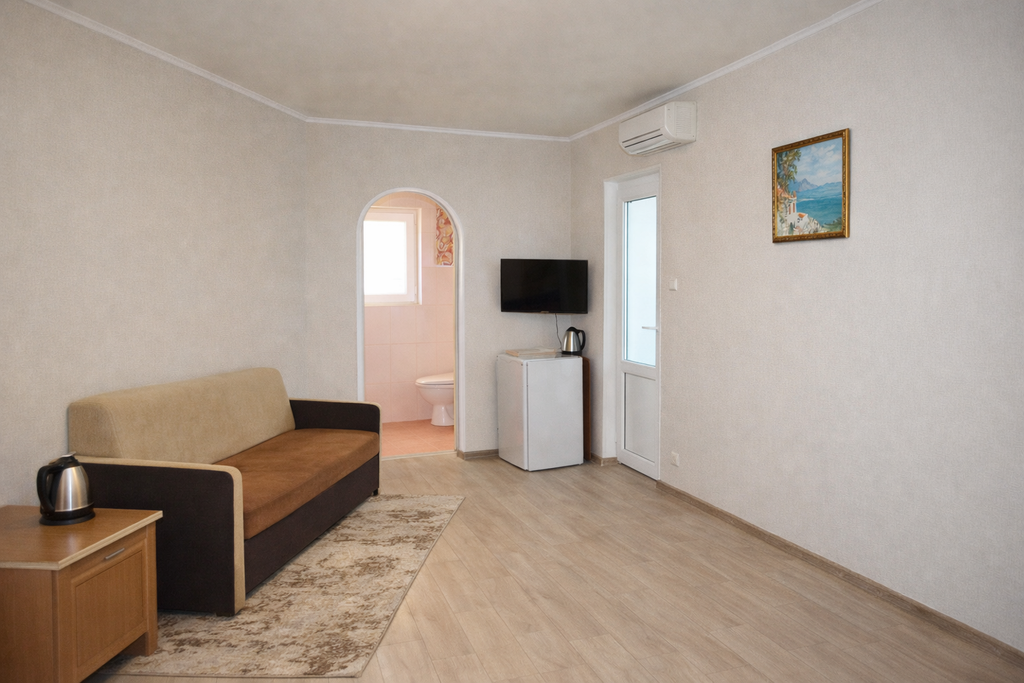 Предлагаем комфортабельные номера в мини-гостинице! Находимся у Кипарисовой аллеи, на тихой, спокойной улице в центре города. В номерах: санузел (горячая/холодная вода круглосуточно), кондиционер, холодильник, электрочайник, посуда, кабельное или цифровое TV, бесплатный Wi-Fi. Есть общая кухня, стиральная машина, уютный зеленый двор, мангал, барбекю.