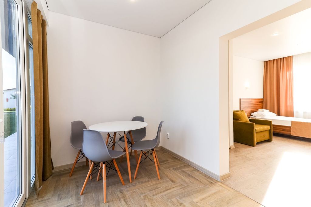Гостевой дом «Юг», расположенный в частном секторе, — это тихое и уютное место в поселке Кучугуры на берегу Азовского моря. Большая территория, удобные и комфортные домики и номера, с отдельными зелеными террасами, большая детская площадка с Аниматором, чистый и свежий морской воздух, все это способствует хорошему и приятному отдыху и оздоровлению на Азовском побережье. Отдых в Кучугурах привлекает семей с детьми, супружеских пар — все, кто хочет расслабиться, хорошо провести время и оставить о нем положительный отзыв. Для комфортного размещения во время отпуска воспользуйтесь услугами гостевого дома «Юг». Четыре отдельных домика на два хозяина расположены в 400 метрах от моря, без подъемов и спусков. Дорога от гостевого дома до моря займет считанные минуты. Для гостей с маленькими детьми и пожилых граждан дорога до моря займет 8 минут. Отдых на Азовском море оставляет приятные воспоминания. А чтобы сделать его еще лучше, мы предлагаем гостям услуги аниматоров для детей, большую деревя