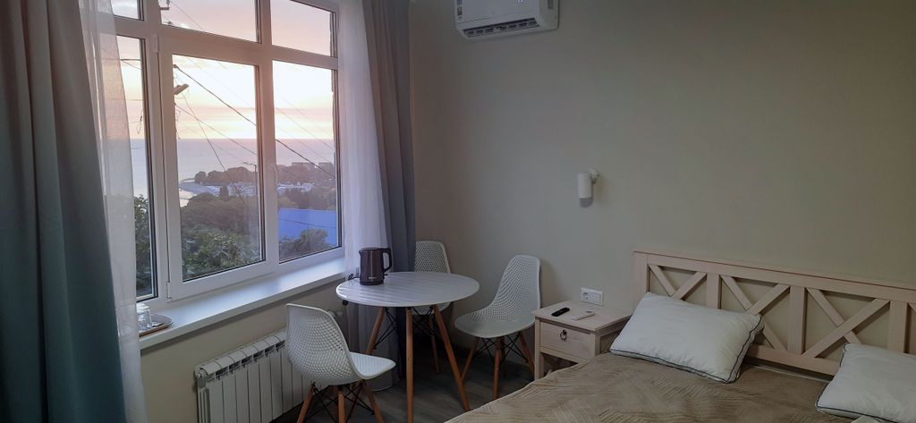 Гостевой дом на Хвойной — место где море встречается с небом Расположение и вид: Наш дом расположен в санаторной зоне живописного поселка Лазаревское, всего в 400 метрах от морского берега. Он стоит на высоте 80 метров над уровнем моря, что открывает вам по-настоящему шикарный панорамный вид — бескрайняя морская гладь и уютные улицы поселка у ваших ног. Кавказские горы с горными ручьями и водопадами ждут поблизости и готовы очаровать тропической природой. Подняться к нам — часть приключения: прогулка по живописной дороге займет 10–15 минут или одна остановка на маршрутке. Рядом вас ждет проверенная временем столовая «Лукоморье» с прекрасными отзывами. Каждый номер — это собственная смотровая площадка. Почти из номера вас ждёт выход на просторный панорамный балкон со столом и стульями, где можно наслаждаться видом заката, кавказских гор или провести романтический вечер под звёздами. Уютный общий балкон на два соседних номера — идеально для семей или компаний друзей, в семейных номерах с