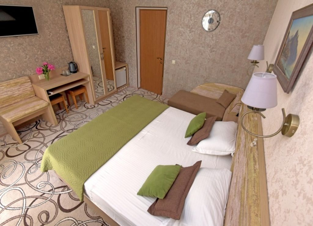 Стильная «Глициния» расположена на одной из старейших улиц Феодосии в 100 метрах от моря. Граничит с зелёным массивом видовой площадки на Бульварной горке и дореволюционными дачами «Милос» и «Виктория» — достопримечательностями древнего города. Останавливаясь в «Глицинии», для вас всегда найдутся развлечения по вкусу. Насладитесь неспешной прогулкой по Феодосийской набережной, любуйтесь морскими видами, открывающимися из номеров и с видовой террасы отеля. Наш отель принимает гостей с 2008 года. К услугам наших дорогих гостей — 17 комфортных номеров, с которых открывается прекрасный вид на залив. Главное преимущество нашего отеля — уют семейного отдыха, высокие стандарты обслуживания и внимание к каждому гостю. Мы заботимся не только об отдыхе, но и о развлечениях гостей. К вашим услугам — бассейн во дворике отеля, русская баня, хамам, кальянная. В кафе и на открытой террасе отеля «Глициния» можно организовать и провести торжества любого формата и масштаба. В кафе «Глициния» представл