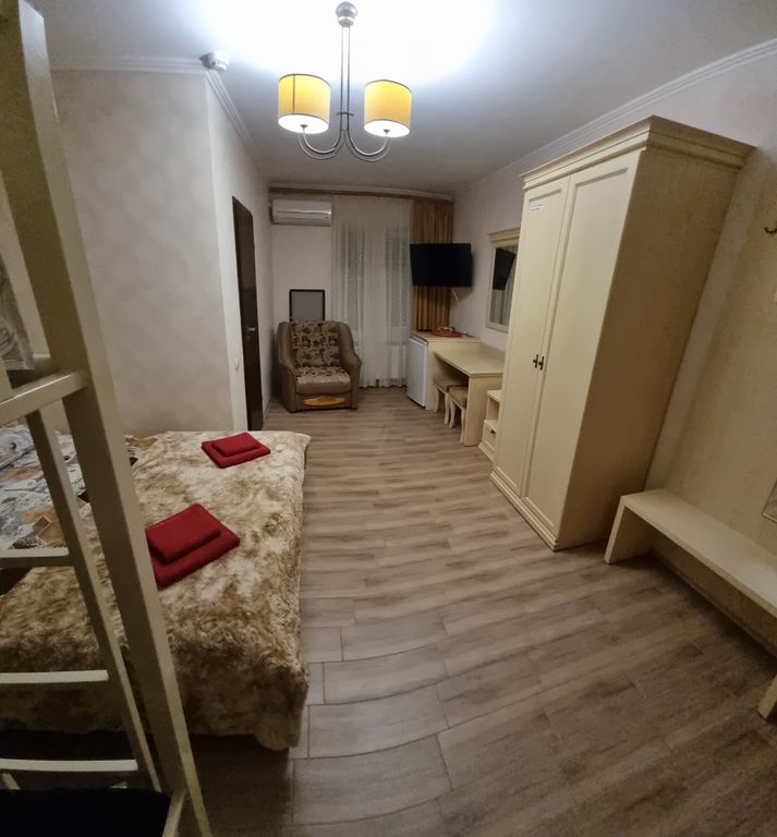 Новый современный гостевой дом «Валери» расположен в самом сердце курортной зоны Евпатории, в 500 м от прекрасного песочного пляжа. Рядом раскинулась красивейшая набережная им.Горького, огромный парк развлечений и тематический аквапарк «Акваленд». На набережной и в парке развлечений имеется вся инфраструктура для веселого и безмятежного времяпровождения на любой вкус и кошелек. Это рестораны, бары, кафе, клубы, магазины, а также множество аттракционов и других развлечений для детей и взрослых. Аквапарк «Акваленд», расположенный недалеко от отеля станет поистине любимым местом времяпровождения для всей семьи. Развитая инфраструктура и масса развлечений станут прекрасным дополнением к отдыху в «Валери». Гостевой дом «Валери» - это абсолютно новое и современное здание, с уютной и ухоженной территорией. Номерной фонд отеля составляет 6 номеров класса стандарт и 15 номеров стандарт плюс. Номера очень уютные, в них есть все необходимое для комфортного отдыха. На территории гостевого дома рас
