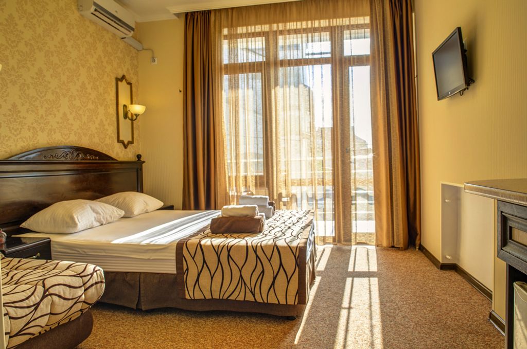 Дата ввода в эксплуатацию: июль 2013 года. Расположение: отель расположен в старом Коктебеле, в 100 метрах от моря. Находится отель на улице десантников. Есть оборудованная кухня для самостоятельного приготовления пищи Есть собственное кафе- столовая, где можно вкусно быстро и недорого покушать . 1)2-ух местный с двумя односпальными кроватями. 2)2-ух местный с двуспальными кроватями. 3)2-ух комнатный с 2 сан-узлами и балконами. 4) люкс для новобрачных. 5) номер "комфорт"(двухместный улучшенный) В номере: 1)индивидуальный кондиционер. 2)спутниковое телевидение(led) 3)меблированный балкон. 4)ковровое покрытие. 5)сан-узел(душевая, фен) 6)холодильник. 7)wi-fi. 8)сейф. 9)электрочайник. 10)посуда. 11)утюг, гладильная доска(по запросу) Ежедневная уборка номера и смена полотенец, смена постельного белья раз в 3 дня. Территория: имеется площадка-барбекю, зоны отдыха. Платные услуги: 1)услуги прачечной. 2)услуги такси. Обращаем внимание всех отдыхающих, что летом 20