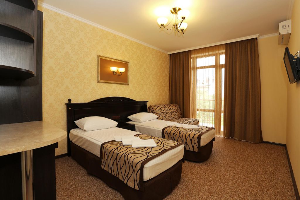 Дата ввода в эксплуатацию: июль 2013 года. Расположение: отель расположен в старом Коктебеле, в 100 метрах от моря. Находится отель на улице десантников. Есть оборудованная кухня для самостоятельного приготовления пищи Есть собственное кафе- столовая, где можно вкусно быстро и недорого покушать . 1)2-ух местный с двумя односпальными кроватями. 2)2-ух местный с двуспальными кроватями. 3)2-ух комнатный с 2 сан-узлами и балконами. 4) люкс для новобрачных. 5) номер "комфорт"(двухместный улучшенный) В номере: 1)индивидуальный кондиционер. 2)спутниковое телевидение(led) 3)меблированный балкон. 4)ковровое покрытие. 5)сан-узел(душевая, фен) 6)холодильник. 7)wi-fi. 8)сейф. 9)электрочайник. 10)посуда. 11)утюг, гладильная доска(по запросу) Ежедневная уборка номера и смена полотенец, смена постельного белья раз в 3 дня. Территория: имеется площадка-барбекю, зоны отдыха. Платные услуги: 1)услуги прачечной. 2)услуги такси. Обращаем внимание всех отдыхающих, что летом 20