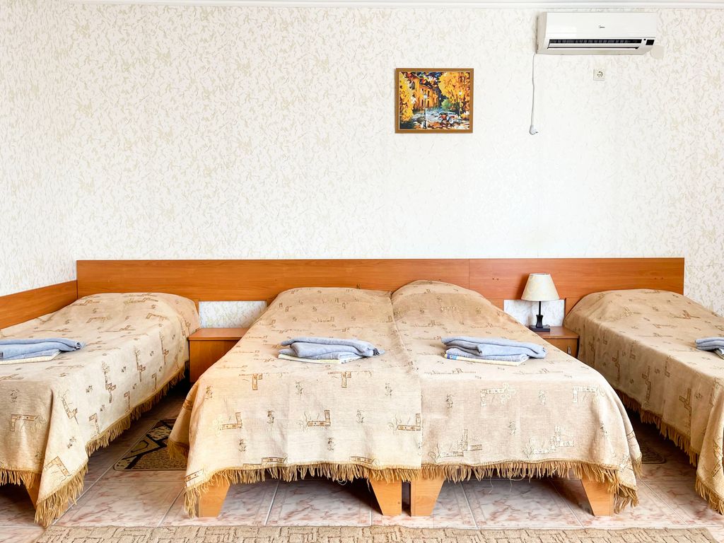 Ждем тех, кто не накупался и не наплескался в море в прошлом году. Тех, кто едет на море в первый раз. Тех, кто любит отдыхать вдвоем или большой семьей. Места хватит для всех! На вилле «Каламит» вы будете «лениво» жить, купаться и загорать. Можно изучать историю Евпатории, ездить на сотни экскурсий по всему Крыму, заниматься экстремальным и активным отдыхом, знакомиться с винами и кухней Крыма. Мы расскажем, где можно покушать самые вкусные «с пылу, с жару» чебуреки в Крыму, где готовят самые вкусные кофе и шашлык в Евпатории и многое-многое другое. Мы предлагаем: - Первую линию - Шикарный пляж (бесплатная и VIP зоны) - Комфортные большие и светлые номера с шикарным видом на море - Зоны отдыха (барбекю, детская площадка, беседка, качели в зелёной зоне) - Организацию экскурсий - Парковку В номерах сейф, холодильник, кондиционер, телевизор, электрический чайник, фен, полотенца, туалетные принадлежности и другие приятные мелочи. На террасах стол и пластиковые кресла, что позволяет пр