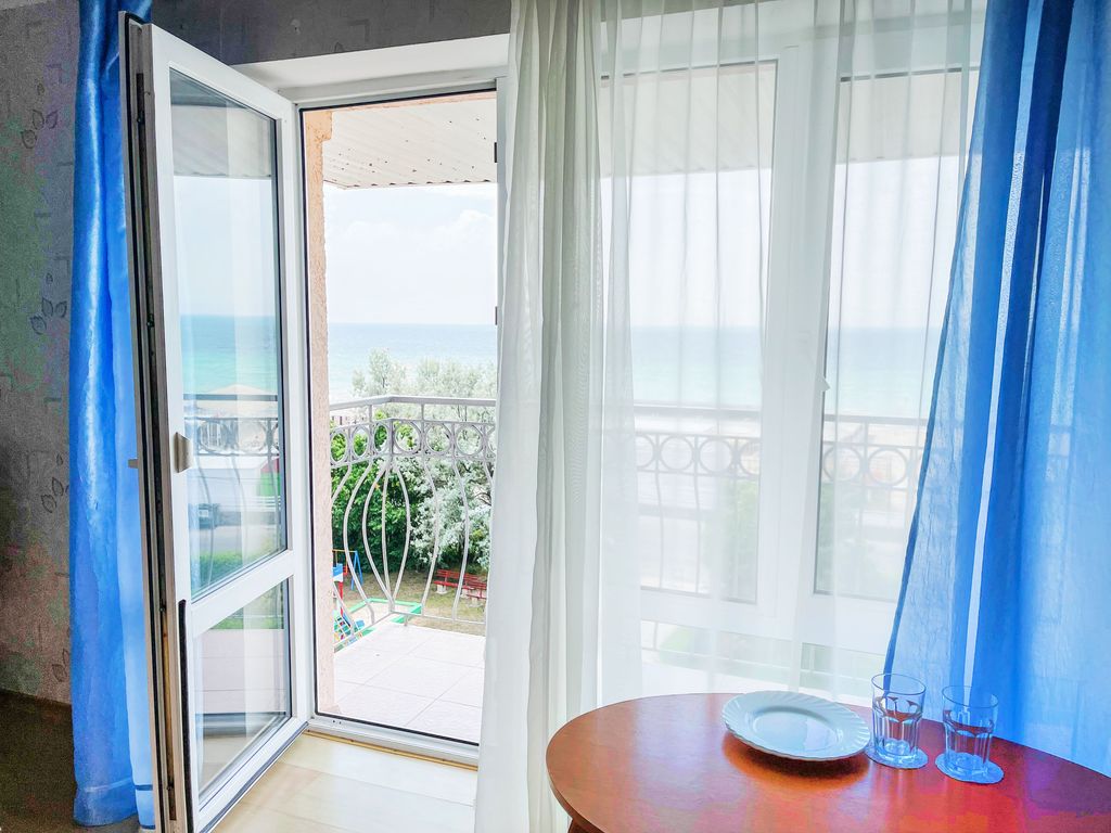 Ждем тех, кто не накупался и не наплескался в море в прошлом году. Тех, кто едет на море в первый раз. Тех, кто любит отдыхать вдвоем или большой семьей. Места хватит для всех! На вилле «Каламит» вы будете «лениво» жить, купаться и загорать. Можно изучать историю Евпатории, ездить на сотни экскурсий по всему Крыму, заниматься экстремальным и активным отдыхом, знакомиться с винами и кухней Крыма. Мы расскажем, где можно покушать самые вкусные «с пылу, с жару» чебуреки в Крыму, где готовят самые вкусные кофе и шашлык в Евпатории и многое-многое другое. Мы предлагаем: - Первую линию - Шикарный пляж (бесплатная и VIP зоны) - Комфортные большие и светлые номера с шикарным видом на море - Зоны отдыха (барбекю, детская площадка, беседка, качели в зелёной зоне) - Организацию экскурсий - Парковку В номерах сейф, холодильник, кондиционер, телевизор, электрический чайник, фен, полотенца, туалетные принадлежности и другие приятные мелочи. На террасах стол и пластиковые кресла, что позволяет пр