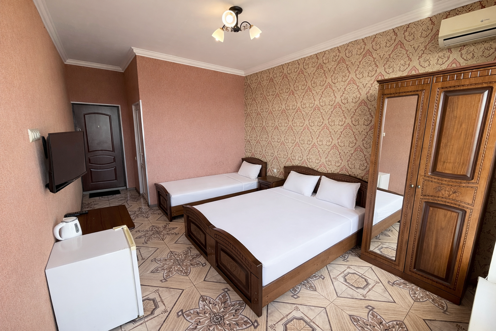 Современный гостевой дом Аида расположен в экологически чистом уголке Адлера, где можно отдохнуть от городской суеты и забот, в то же время находиться в пешей доступности от всех развлечений. В распоряжении туристов большая облагороженная территория, бассейн с подогревом и детской зоной, детская площадка, беседки, кухня для самостоятельного приготовления, с июня по сентябрь работает столовая. На территории и в номерах бесплатный Wi-Fi. Номерной фонд представлен номерами стандарт, улучшенный с видом на горы и делюкс с видом на море в новом корпусе (150 метров от основного). Номера располагают всеми удобствами для туристов, включая собственную ванную комнату, кондиционер, телевизор и балкон с местом для отдыха. В номерах делюкс и улучшенный дополнительно есть холодильник. Бесплатное размещение детей до 5 лет без дополнительного места! До моря 15−20 минут ходьбы, столько же времени до Курортного городка в котором расположены: Адлерский дельфинарий, океанариум, боулинг, бассейн с морской в