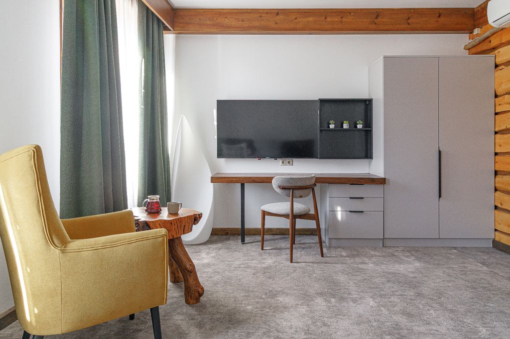 Гостевой дом «Велья» — это новое, современное, четырёхэтажное здание, расположенное в центре посёлка Красная Поляна. Из окон отеля открывается великолепный панорамный вид на горные массивы Аибга и Ачишхо, территория отеля граничит с Сочинским национальным парком. Останавливаясь в гостевом доме «Велья», гости имеют возможность в полной мере ощутить целебный эффект восстанавливающих spa-процедур. Высококлассные специалисты предложат разные виды ухода за телом, парение в русской бане, в сауне, в хаммаме. Гостевой дом «Велья» расположен на высоте 630 м над уровнем моря, в 5 км от горнолыжных комплексов, в 40 км от аэропорта Адлер и в 30 минутах от пляжей Чёрного моря. В стоимость номера входит: Проживание в номере выбранной категории; Wi-Fi в номерах; Спутниковое телевидение; Частная парковка; Сушилка и хранение лыжного оборудования. Наш отель оборудован пандусом для инвалидных колясок, а также имеет специально оснащенный номер для инвалидов. На время проживания в отеле на вс