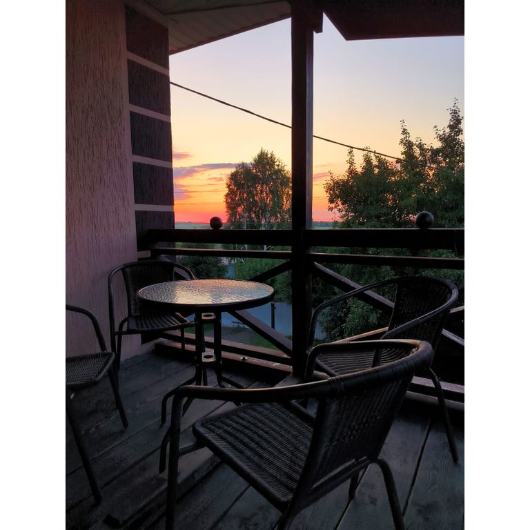 Двухуровневый семейный номер с отдельным входом и террасой. В номере на пермом этаже располагается гостиная и полноценная ванная комната, на втором этаже спальная комната с двумя двуспальными кроватями. В номере есть чайник, микроволновка, небольшой холодильник, индукционная плитка, вся необходимая посуда, стиральная машинка, фен, утюг и гладильная доска, WI-FI. Как дополнительное место можно использовать раскладной двуспальный диван или уомфортную еврораскладушку. На территории есть русская баня и беседка на большую компанию с мангальной зоной и казаном.