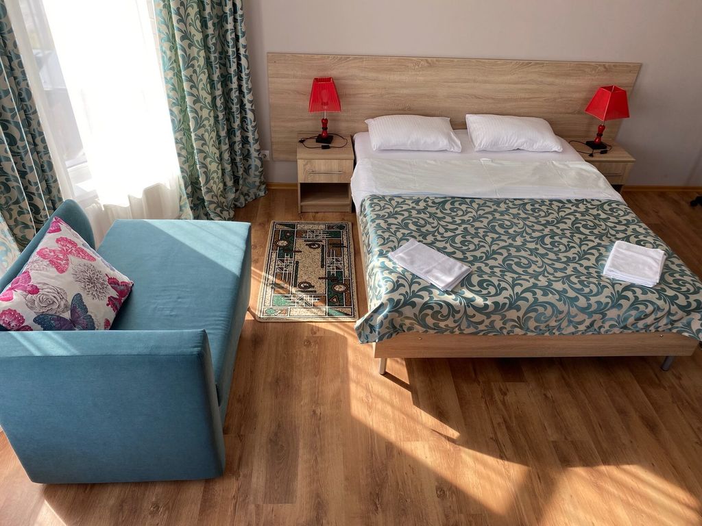 Трехэтажное здание 2020 года со светлыми и просторными номерами с классификацией "Стандарт" , "Де люкс", Апартаменты и "Семейный". Находиться гостевой дом "Золотые россыпи" в курортном поселке Джемете в 15 минутах пешком от песчаного пляжа. Пляж Джемете — это чистейший целебный мелкозернистый песок, достигающий в ширине сто метров. На протяжении всей длины пляжа Джемете располагаются насыпи песчаных дюн, поросших уникальными растениями. И считается лучшим пляжем на всем Черноморском побережье. Расстояние от центра города Анапа 8, от ж/д вокзала Анапа 2, 44 км. от международного аэропорта Анапа имени В. К. Коккинаки (Витязево) 6, 1км. Недалеко (1-3 остановки на транспорте) расположены аквапарк, дельфинарий, детские парки, аттракционы. В пешей доступности столовые, аптеки, кофейни, бары, магазины и многое другое! Есть своя парковка, небольшой уютный дворик с бассейном и зоной для загара.