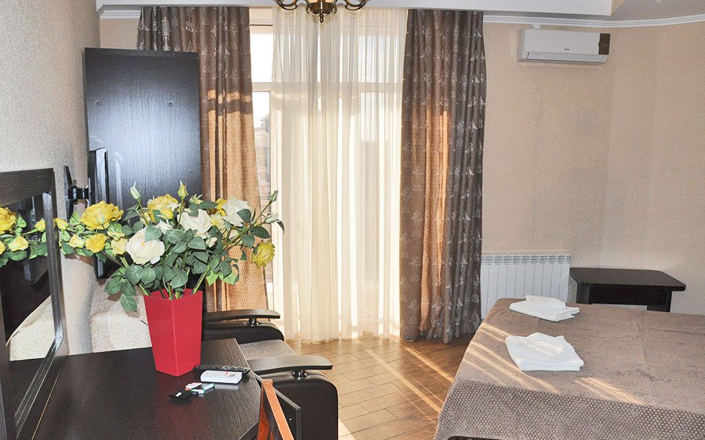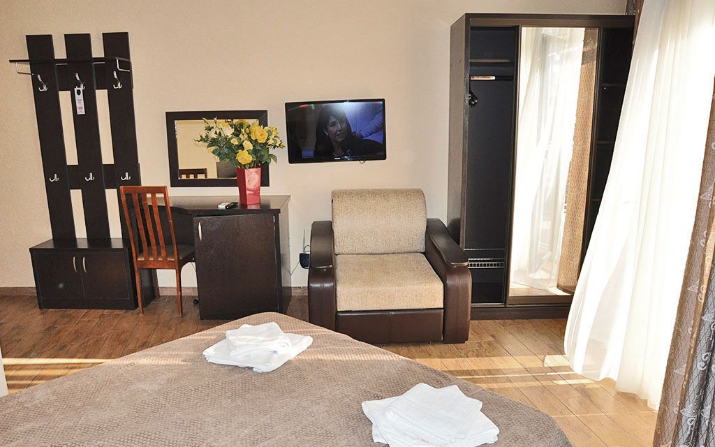 Гостевой «Милана» находится в самом центре поселка Витязево, в 8 минутах от просторного песчаного пляжа. Расположен очень удобно, что позволяет быстро добраться не только до пляжа, но и до популярных объектов развлечений п. Витязево: аквапарка, парка аттракционов, дельфинария, океанариума, крокодиловой фермы и экскурсионного бюро. Поблизости есть многочисленные кафе и рестораны, овощные лавки и продуктовые магазины. К услугам гостей: уютные номера, кухня для самостоятельного приготовления пищи, столовая с разнообразным меню рядом с гостиницей. На благоустроенной территории гостевого дома оборудована зона отдыха с детской площадкой, летней беседкой, зонтиками, где гости могут отдохнуть в компании с друзьями, попробовать в баре разнообразные коктейли, напитки, мясные, рыбные и овощные блюда, приготовленные на мангале. Номерной фонд: Гостевой дом включает 34 современных номера с удобствами. Все номера «Полулюкс» оснащены кондиционерами, холодильниками, жк-телевизорами и современной удобно