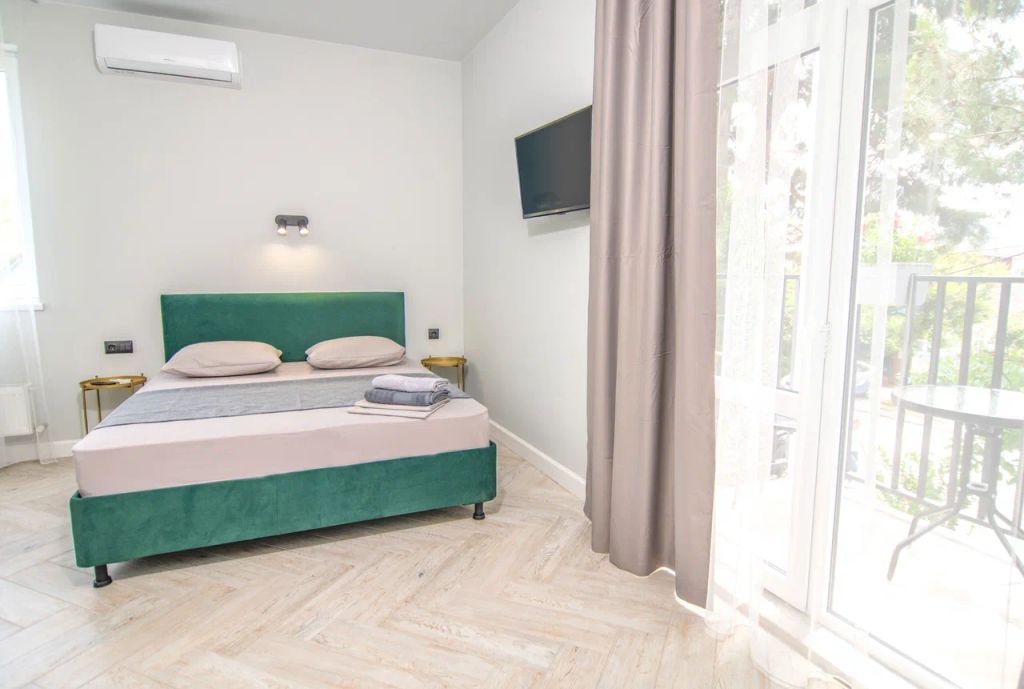 В центральной части города, в 12–15 минутах ходьбы от моря и новой красивой набережной, находится студия «Нова». Студия новая — отличный современный ремонт, вся мебель и техника новые. Частный закрытый двор, специально для автопутешественников организована парковка. На территории мангал (дрова) и бассейн (май по октябрь). Всё есть необходимое для комфортного проживания, могут разместиться до 4-х взрослых. Вода горячая, холодная постоянно. Супермаркет «Магнит» в 5-ти минутах, круглосуточные магазины «Караван», рынок Центральный. Кафе, рестораны, магазины, аптеки в радиусе 200–300 м., столовая № 1, столовая СССР, кафе «Обжора», бары, кафе с домашней кухней, а также два вида пляжей (песочный и галечный). Вас не будет беспокоить музыка ночных дискотек. На пути к морю Вы выходите к памятнику Лермонтова и центральному фонтану на набережной. Рядом парк аттракционов, где много каруселей для детей. В этом районе много различных кафе и ресторанов, в том числе и топ-рейтинговых. Выход к морю на ц