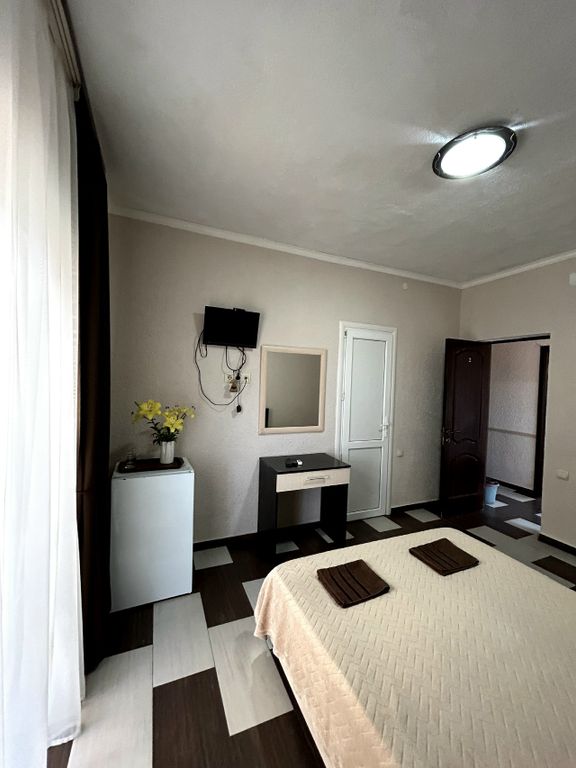 Небольшой, но очень уютный гостевой дом «Полина» предлагает вам комфортабельные номера в тихом спальном районе города-курорта Геленджик. Проживание: Номера рассчитаны на проживание 2−4 человек. В номерах все удобства: кондиционер, ЖК-телевизор, с/у, душ, горячая и холодная вода круглосуточно, Wi-Fi. Также к вашим услугам апартаменты 3-х комнатные с кухней, общей площадью 120 кв. м (отдельный этаж), рассчитан на 9−12 человек. Питание: При гостевом доме находится кафе, где можно всегда вкусно и разнообразно покушать. В распоряжении гостей на каждом этаже имеются просторные светлые кухни, укомплектованные всем необходимым. На территории есть зона отдыха с мангалом. Кроме этого, на территории есть зона отдыха с мангалом. Для гостей с личным автомобилем в 50 метрах находится круглосуточная охраняемая автостоянка — бесплатно. А также предоставляем трансфер с автовокзала Геленджика и железнодорожного вокзала Новороссийска — платно. Нам уже не терпится встретиться с вами! Для госте