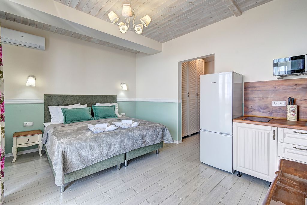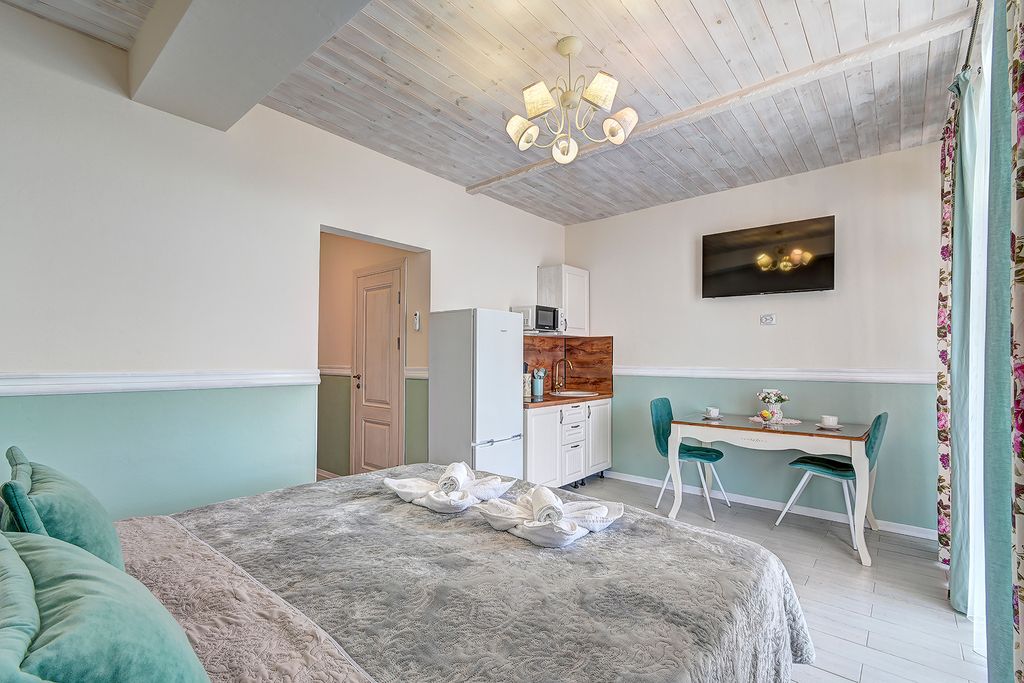 Гостевой дом "Флоранс" расположен в удивительно красивом месте Хосты - на небольшой возвышенности, с которой открывается потрясающий вид на море и на город. Дорога до оборудованного пляжа и центра Хосты и займет 15-20 минут пешком. В 30 метрах от дома есть автобусная остановка, от которой вы сможете доехать как в сторону Адлера, так и Сочи. На благоустроенном цветущем участке возле дома есть бассейн, с комфортной температурой, действующий с мая по октябрь. Вокруг бассейна вы сможете позагорать на плетеных шезлонгах, любуясь видом открытого моря. Мангальная зона и принадлежности для барбекю позволят вам приготовить вкусный ужин. Уютные, просторные номера, оформленные в стиле "Прованс", со всеми необходимыми принадлежностями для комфортного отдыха. В каждой комнате имеется кровать king-size, раскладной диван или кресла, журнальный столик, туалетный столик, комод или письменный стол, шкаф, телевизор, чайные наборы; в ванной комнате: душ, туалет, фен, гигиенический пр