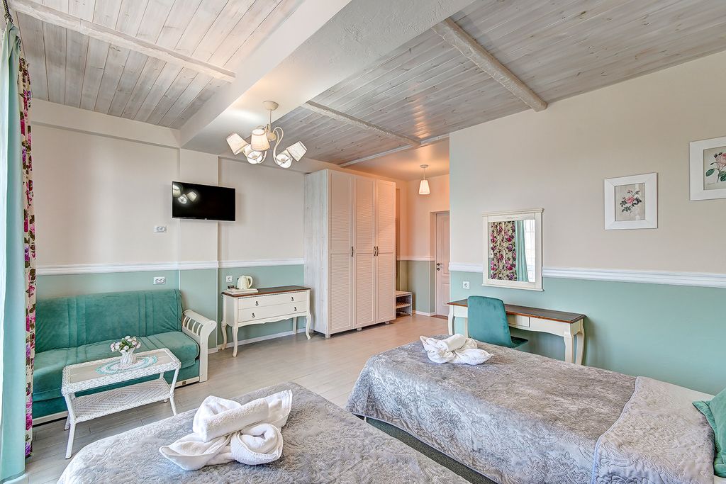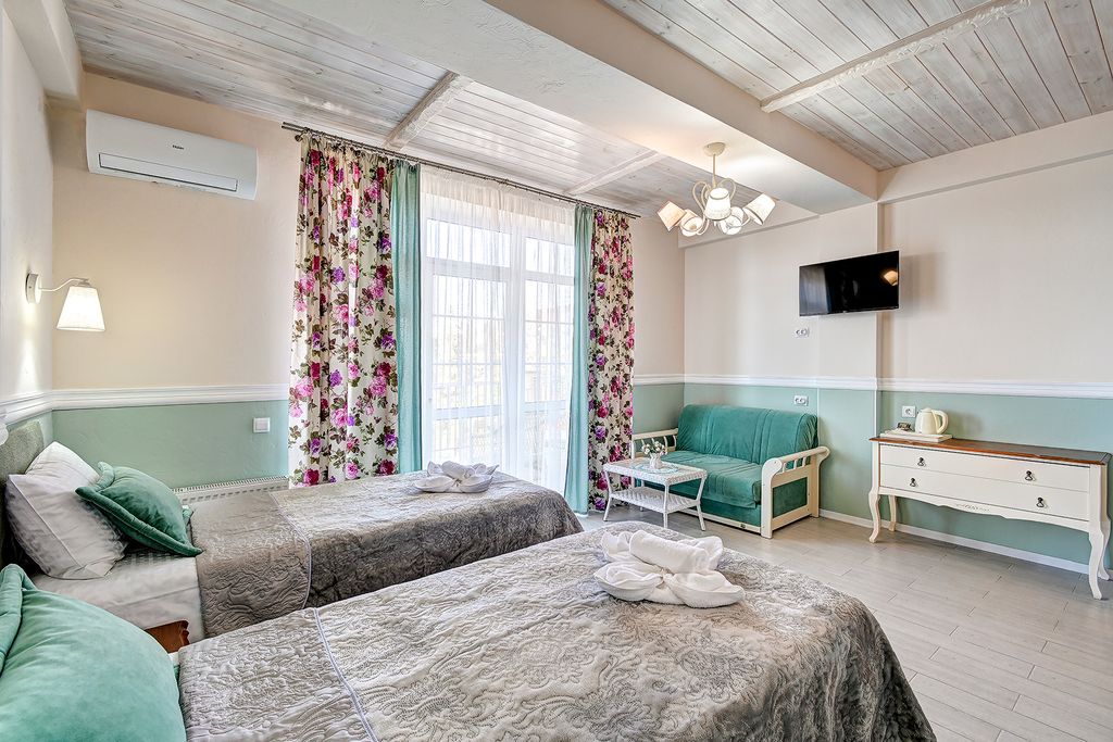 Гостевой дом "Флоранс" расположен в удивительно красивом месте Хосты - на небольшой возвышенности, с которой открывается потрясающий вид на море и на город. Дорога до оборудованного пляжа и центра Хосты и займет 15-20 минут пешком. В 30 метрах от дома есть автобусная остановка, от которой вы сможете доехать как в сторону Адлера, так и Сочи. На благоустроенном цветущем участке возле дома есть бассейн, с комфортной температурой, действующий с мая по октябрь. Вокруг бассейна вы сможете позагорать на плетеных шезлонгах, любуясь видом открытого моря. Мангальная зона и принадлежности для барбекю позволят вам приготовить вкусный ужин. Уютные, просторные номера, оформленные в стиле "Прованс", со всеми необходимыми принадлежностями для комфортного отдыха. В каждой комнате имеется кровать king-size, раскладной диван или кресла, журнальный столик, туалетный столик, комод или письменный стол, шкаф, телевизор, чайные наборы; в ванной комнате: душ, туалет, фен, гигиенический пр