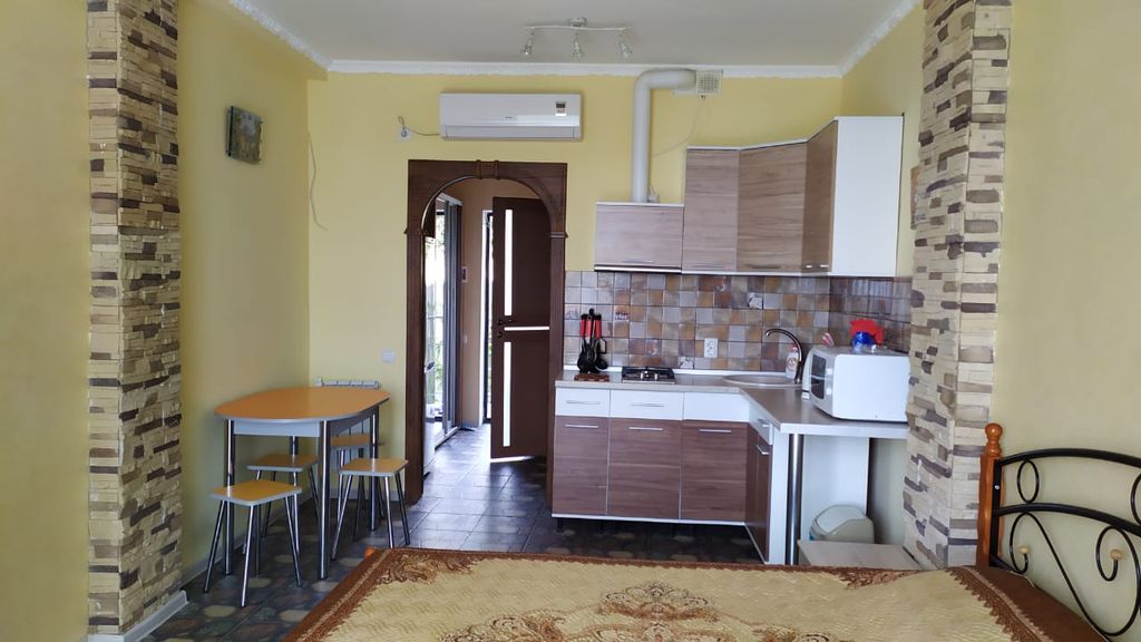 Гостевой дом "Волна" расположен в частном секторе в 10 минутах ходьбы от набережной, что располагает к приятному отдыху в тишине, исключая ночной шум с набережной и автомобильного транспорта. Номера находятся на втором и третьем этаже и имеют балконы, откуда открывается прекрасный вид на море. На третьем этаже находится панорамная площадка откуда открывается прекрасный вид на море и крымские горы! Приезжая на личном транспорте Вы можете не волноваться за его сохранность, т.к во дворе имеется бесплатная парковка. Для полноценного отдыха есть зона барбекю и большая беседка. Номера оснащены всем необходимым для отдыха, большая двуспальная кровать и кресло -кровать. ЖК телевизор со множеством каналов не даст заскучать вечером. Кухня в номере имеет газовую плиту, микроволновку, набор посуды, что позволяет готовить изысканные блюда из крымских овощей, фруктов и свежевыловленных морепродуктов. Все номера оснащены санузлом и душевой кабиной и стиральной машиной! Для отдыхающих без ав