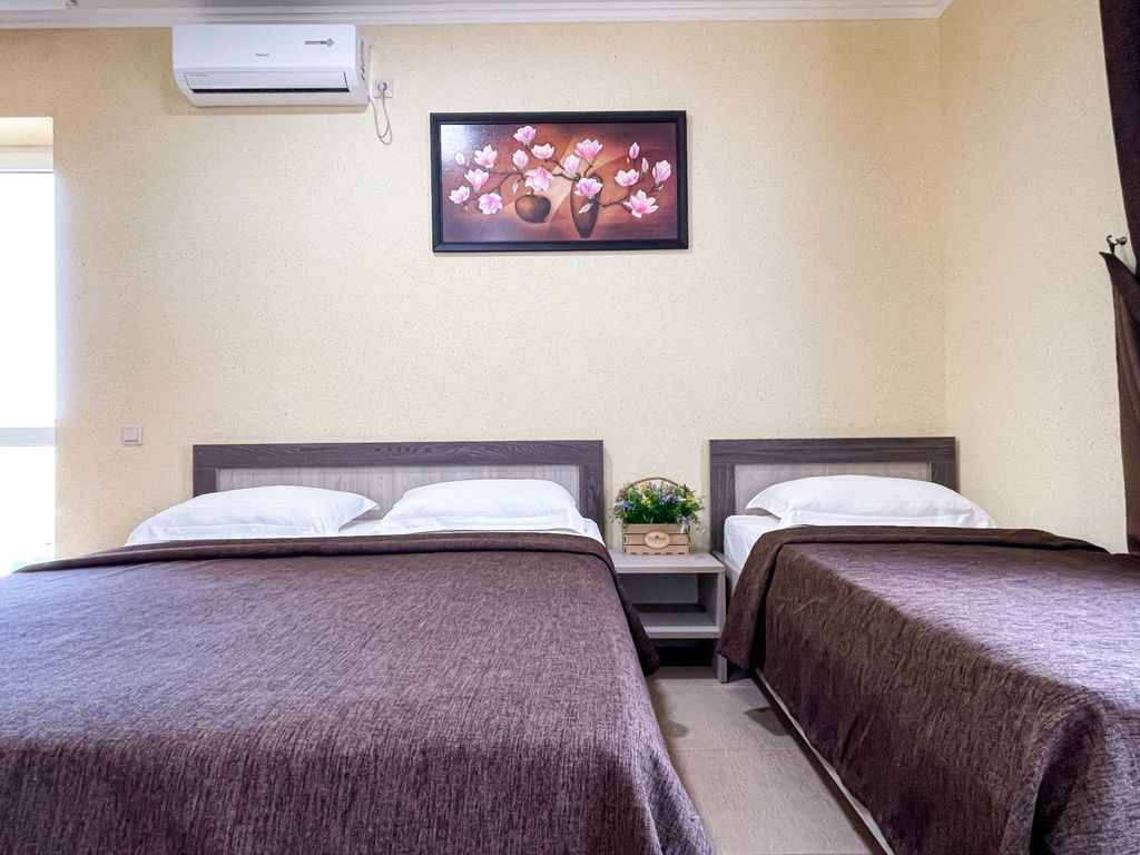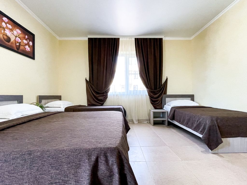 В нашем отеле теплый подогреваемый бассейн +28 градусов. Отель расположен в шаговой доступности (900 метров или 10 минут ходьбы) от белоснежных песчаных пляжей. К услугам гостей: комфортабельные номера со всеми удобствами, большой бассейн с шезлонгами, большая просторная территория, детская площадка, батут, ежедневная детская анимация, недорогая столовая, мангал. Вся социальная и развлекательная инфраструктура в шаговой доступности: аквапарк, дельфинарий, парк аттракционов, множество магазинов, рынок и супермаркет. Для юных туристов бесплатно - анимация, детская площадка, батут, дневные развивающие и игровые программы, вечерняя дискотека и пенные вечеринки, а также детские кроватки, прогулочные коляски, стульчики для кормления, ванночки, горшки и т.д. Цены умеренные. В межсезонье с конца сентября до конца мая бассейн, анимация и столовая не функционируют.