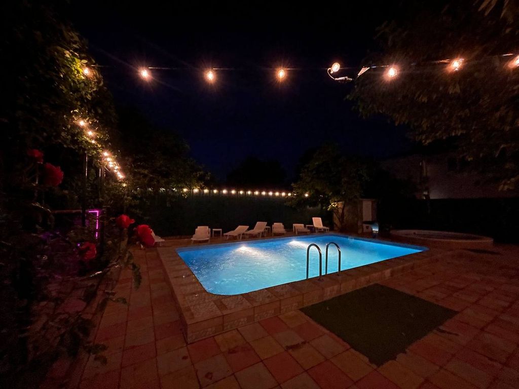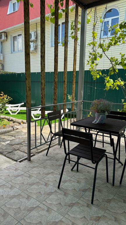 Приглашаем на отдых в наш гостевой дом «Альдаир». Гостевой дом «Альдаир» имеет возможность обслуживать групповые и персональные заезды. Имеются 2-х, 3-х, 4-х, 5-местные номера с удобствами (сплит система, ТВ, холодильник, душ, санузел) и номера -эконом класса 2-х, 3-х, 4-х, 6-ти (из 2-х комнат) местные. Эконом-номера — на 8 номеров по 2 душа и туалета Все номера с холодильником, ТВ, душ и туалет. С кондиционером. Добрая, уютная атмосфера. Приветливые и доброжелательные, ненавязчивые хозяева. Дорога к морю по тенистой алее и абсолютно ровной парковой тропинке, мимо разнообразных ларьков по тротуару. Красивый обзор, без спусков и подъёмов Кухня общая, полностью укомплектованная кухонными принадлежностями и столовая с возможностью заказа питания. К Вашим услугам дополнительно: стоянка, бильярд (платные), теннисный стол, воздушные площадки, мини библиотека, уютная зона отдыха с качелями, бассейн, Детский бассейн и оба с подогревом. Возможно заселение с собаками мелких пород, доплата 1000 р