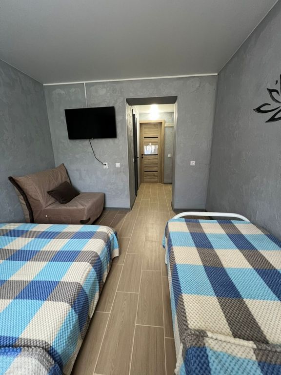 Приглашаем на отдых в наш гостевой дом «Альдаир». Гостевой дом «Альдаир» имеет возможность обслуживать групповые и персональные заезды. Имеются 2-х, 3-х, 4-х, 5-местные номера с удобствами (сплит система, ТВ, холодильник, душ, санузел) и номера -эконом класса 2-х, 3-х, 4-х, 6-ти (из 2-х комнат) местные. Эконом-номера — на 8 номеров по 2 душа и туалета Все номера с холодильником, ТВ, душ и туалет. С кондиционером. Добрая, уютная атмосфера. Приветливые и доброжелательные, ненавязчивые хозяева. Дорога к морю по тенистой алее и абсолютно ровной парковой тропинке, мимо разнообразных ларьков по тротуару. Красивый обзор, без спусков и подъёмов Кухня общая, полностью укомплектованная кухонными принадлежностями и столовая с возможностью заказа питания. К Вашим услугам дополнительно: стоянка, бильярд (платные), теннисный стол, воздушные площадки, мини библиотека, уютная зона отдыха с качелями, бассейн, Детский бассейн и оба с подогревом. Возможно заселение с собаками мелких пород, доплата 1000 р