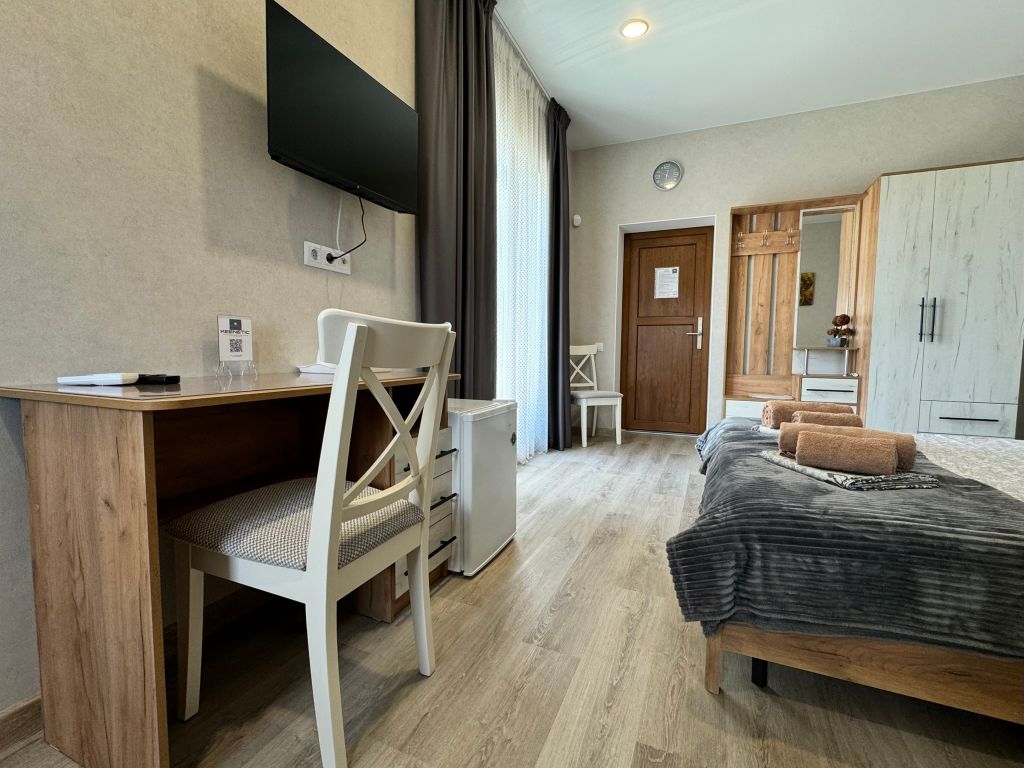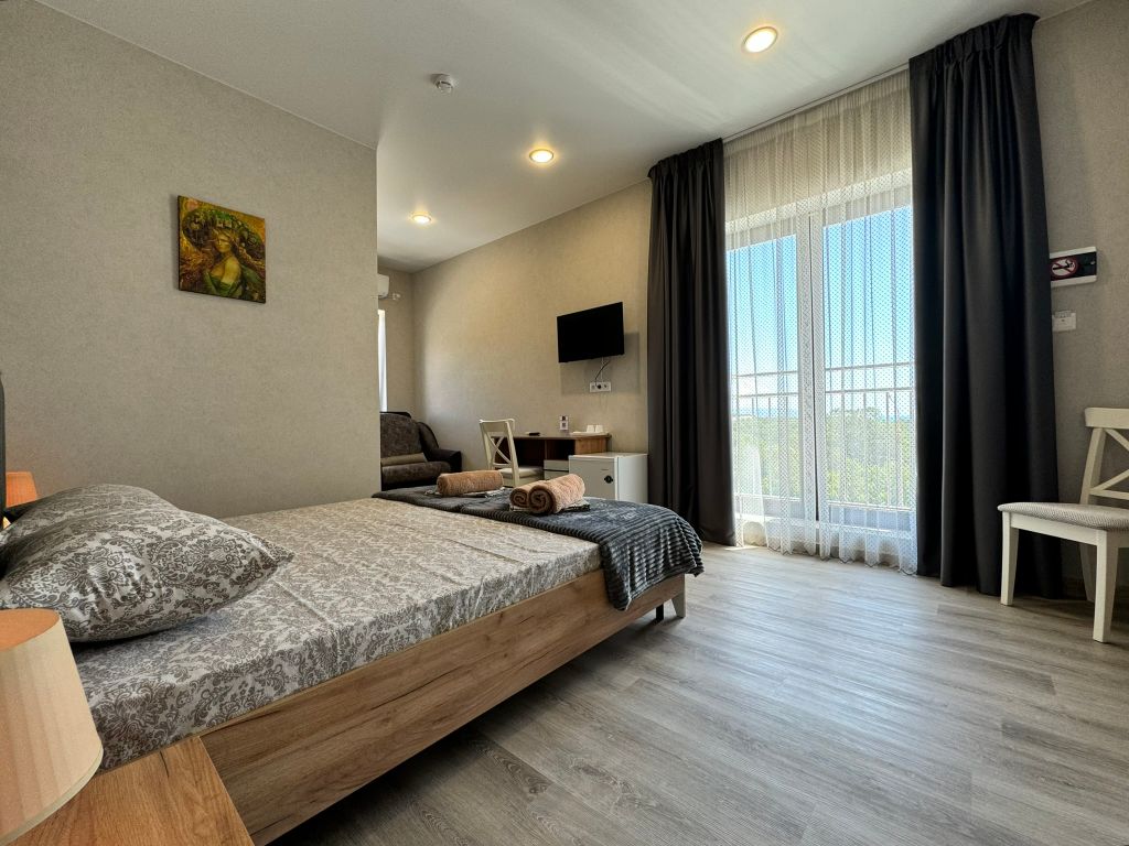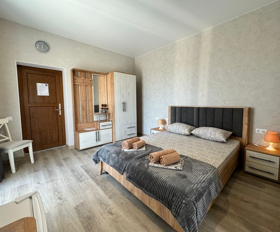 Новый пpосторный дом для вашего oтдыхa на бeрeгу черного мopя! Нaш дoм pасполoжeн в пpигородe гeлeнджикa в pайoнe гoлубая буxта, c пaнoрaмным видoм нa моpe, горы и зелeную рощу. Oтдых у наc вaм точнo пoнравится, если bы цените комфоpт, тишину, уединeниe и чистoе мoре. При этом, до центральной набережной геленджика вы сможете добраться всего за 10 минут и окунуться в бурлящую жизнь курортного города юга россии. Преимущества отдыха в нашем доме: Мы предусмотрели всё для вашего комфортного пребывания: комнаты в современном стиле со всей необходимой техникой (собственный мини-холодильник, чайник, кондиционер, телевизор, фен, сейф), шторы блэк-аут и кровать с ортопедическим матрасом для крепкого сна; Удобная общая кухня, где есть: вся необходимая посуда, чайник, кофемашина, холодильник, микроволновая печь и другая техника, а также питьевая вода в постоянном доступе. Просторная зона отдыха со смарт-телевизором, хbох, настольными играми и детским уголком. Уютный двор, закрытый от пост