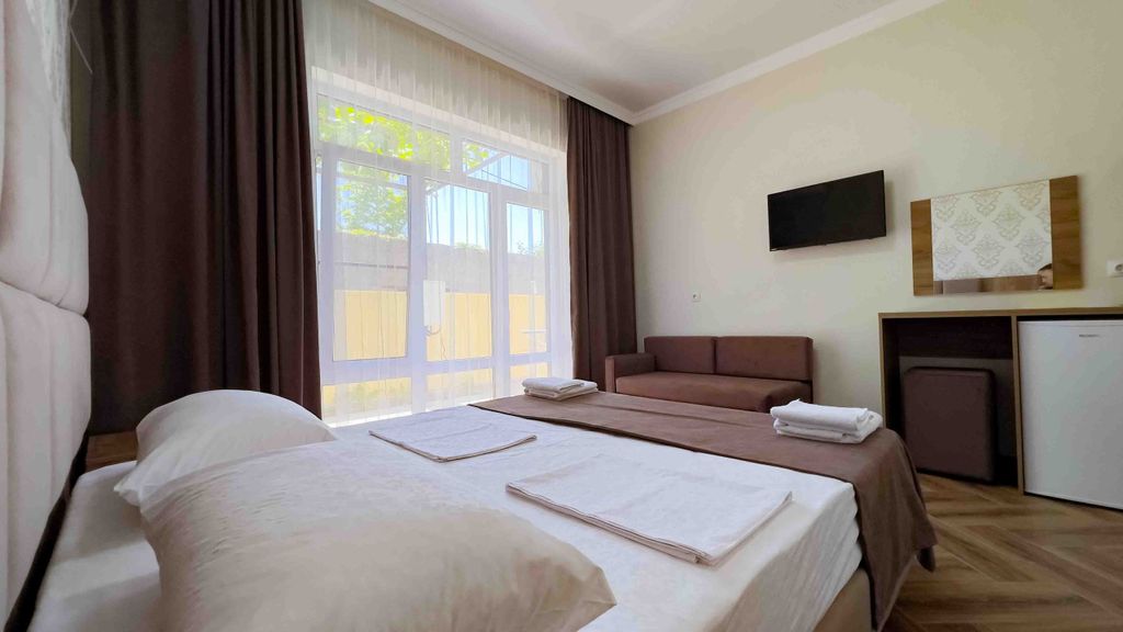 Приглашаем вас провести семейный отдых в нашем новом, уютном гостевом доме свежий ремонт, новая мебель и матрасы, место тихое, вдали от городского шума в номерах есть все удобства, во дворе большой и чистый бассейн, столики для вечерних посиделок либо семейного застолья. До моря 20 минут неспешным шагом есть большая оборудованная кухня, а так же мангальная зона. Во дворе парковка, объект находится под круглосуточным видеонаблюдением