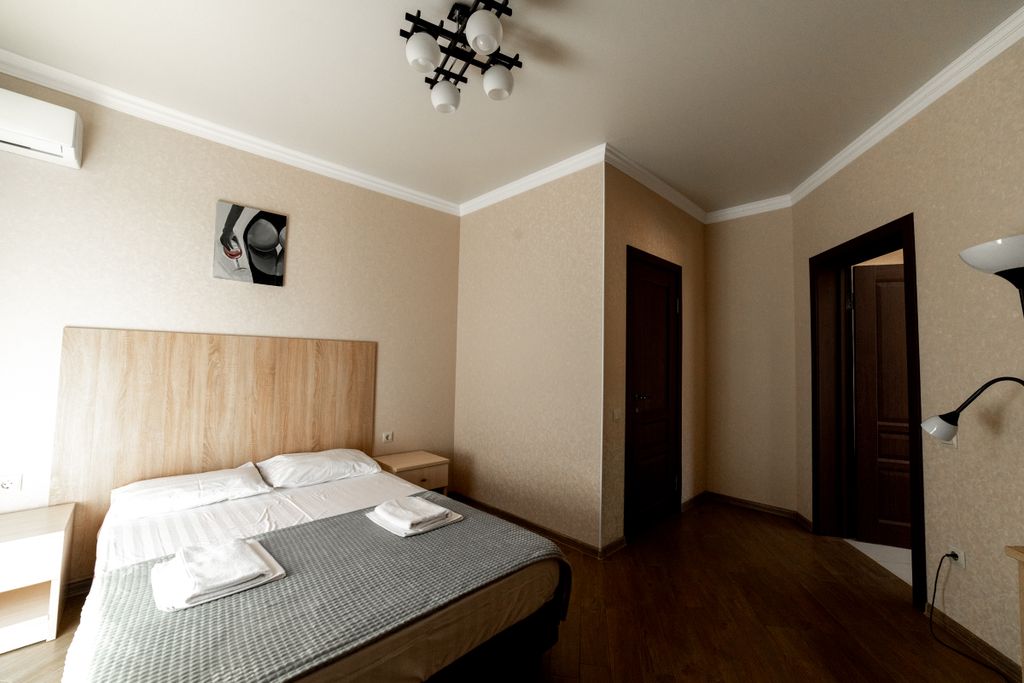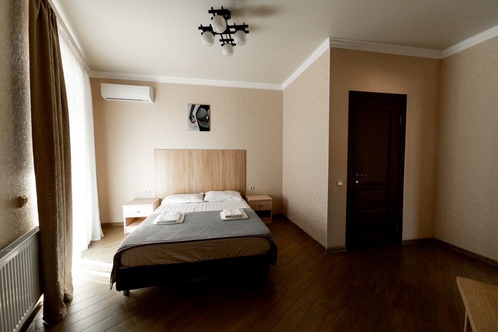 Расположенный всего в 700 метрах от лазурного берега черного моря, наш гостевой дом предлагает идеальное сочетание уединения и доступности к основным достопримечательностям поселка. Тихая улочка, на которой он расположен, позволит вам насладиться спокойствием и безмятежностью, в то время как близость к центру обеспечит лёгкий доступ к магазинам, ресторанам и развлечениям. Мы предлагаем 12 комфортабельных номеров, каждый из которых оснащен всеми необходимыми удобствами для вашего приятного пребывания. В каждом номере есть собственный санузел, удобные кровати и современная мебель, создающие атмосферу домашнего уюта. В каждом номере: телевизор, кондиционер, холодильник, чайник, фен. Приборы для приготовления чая или кофе. Предоставляются бесплатные гигиенические принадлежности: мыло, шампунь, гель для душа. В каждом номере нашего отеля работает бесплатный wi-fi. Кроме этого, в гостевом доме имеется постирочная комната, общая кухня для самостоятельного приготовления пищи, столовая, котор