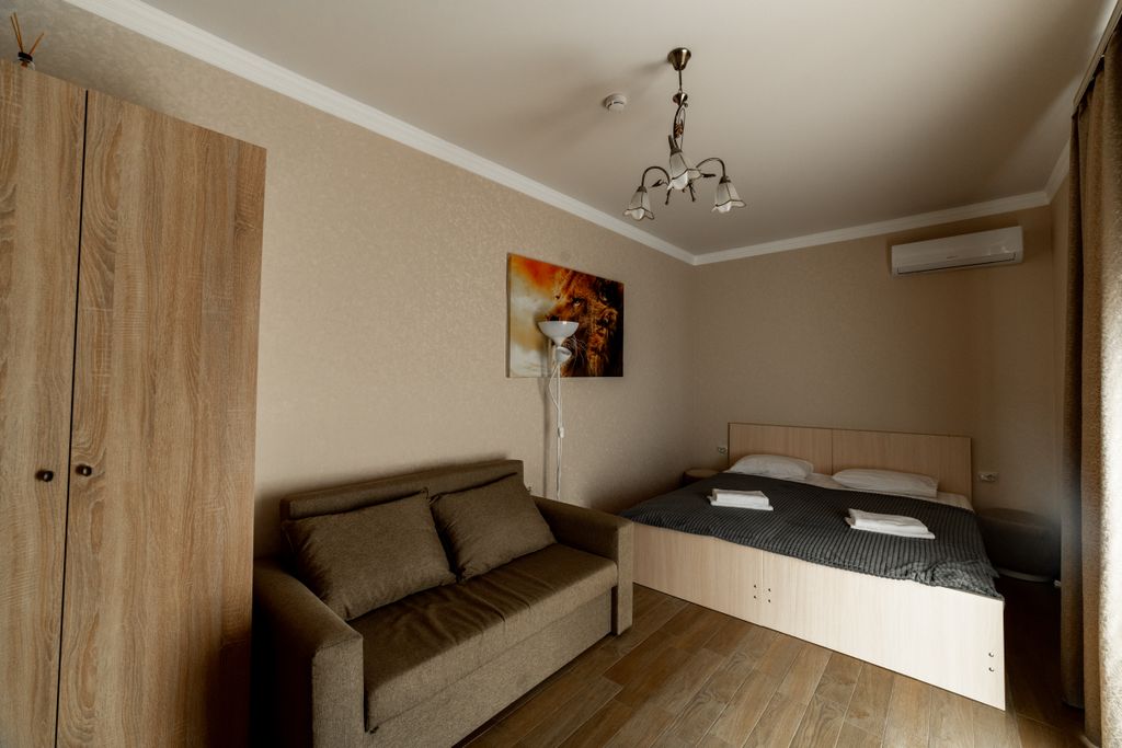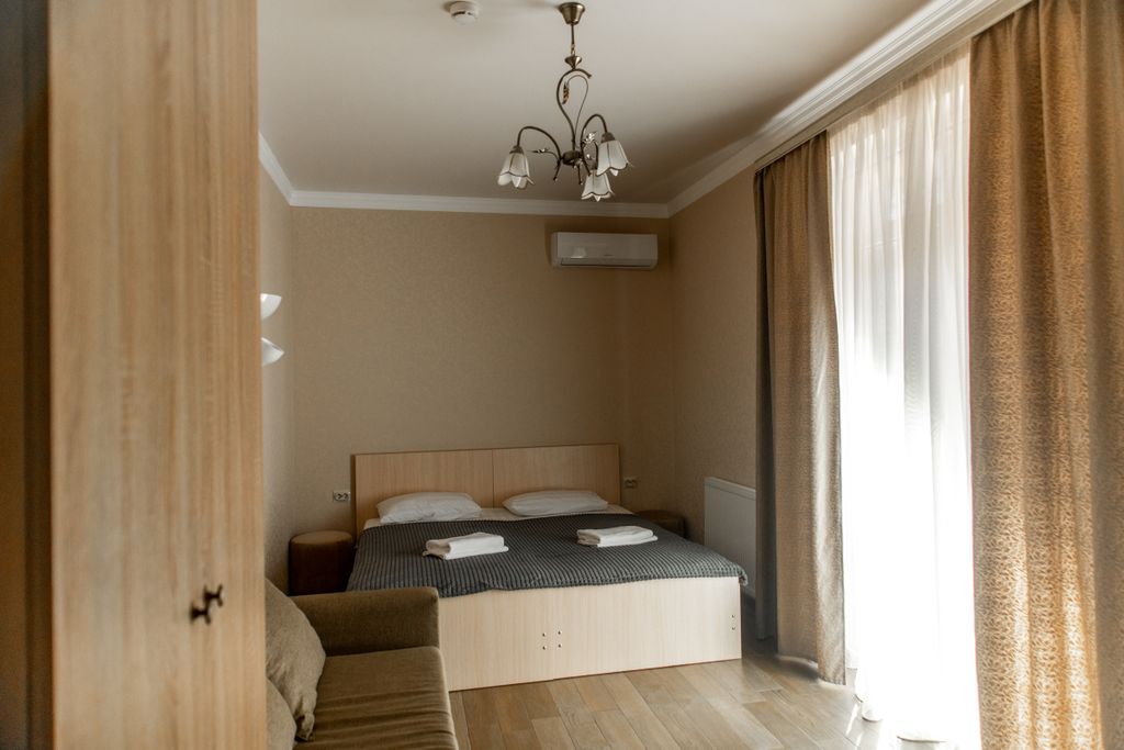 Расположенный всего в 700 метрах от лазурного берега черного моря, наш гостевой дом предлагает идеальное сочетание уединения и доступности к основным достопримечательностям поселка. Тихая улочка, на которой он расположен, позволит вам насладиться спокойствием и безмятежностью, в то время как близость к центру обеспечит лёгкий доступ к магазинам, ресторанам и развлечениям. Мы предлагаем 12 комфортабельных номеров, каждый из которых оснащен всеми необходимыми удобствами для вашего приятного пребывания. В каждом номере есть собственный санузел, удобные кровати и современная мебель, создающие атмосферу домашнего уюта. В каждом номере: телевизор, кондиционер, холодильник, чайник, фен. Приборы для приготовления чая или кофе. Предоставляются бесплатные гигиенические принадлежности: мыло, шампунь, гель для душа. В каждом номере нашего отеля работает бесплатный wi-fi. Кроме этого, в гостевом доме имеется постирочная комната, общая кухня для самостоятельного приготовления пищи, столовая, котор