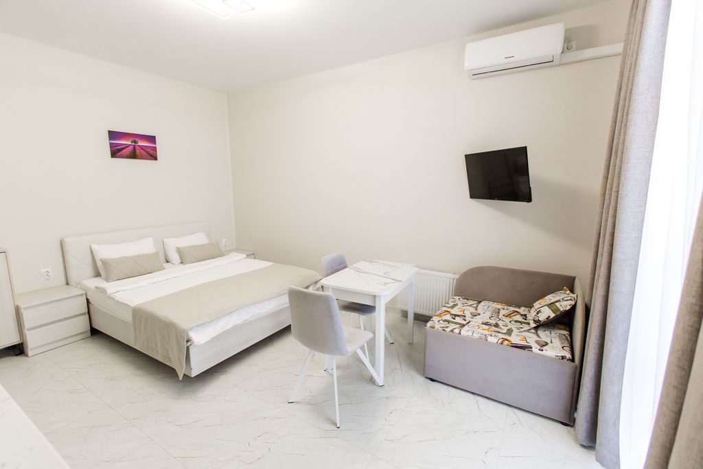 ‘Элени’ – это отличный вариант для семейного отдыха. Гостевой дом находится в 10 минутах от моря. На территории есть: бассейн и зеленая территория барбекю и беседки столовая с домашними завтраками номера от 2500₽ детская площадка своя парковка В номерах категорий 'Семейный 2-х комнатный' и 'Студия 3-местная' есть свои кухни. Также у нас есть зона барбекю с беседками и столовая, куда можно прийти со своей едой на обед или ужин. К нам можно с четвероногими друзьями, но только по предварительному согласованию с нами. Мы берем питомцев исключительно небольших размеров и оставляем за собой право отказать. Николаевка находится на Западном берегу Крыма в 40 км от столицы Республики. В 10–15 минутах ходьбы от гостевого дома находятся продуктовые магазины, аптеки, кафе и небольшие рынки. Всё необходимое — рядом. Отдых у нас – это море, загар и развлечения. Горки, бассейны, катания на скутерах, бананах и гидроаэропланах и т.д. на побережье. Свежий воздух, зелень вокруг,