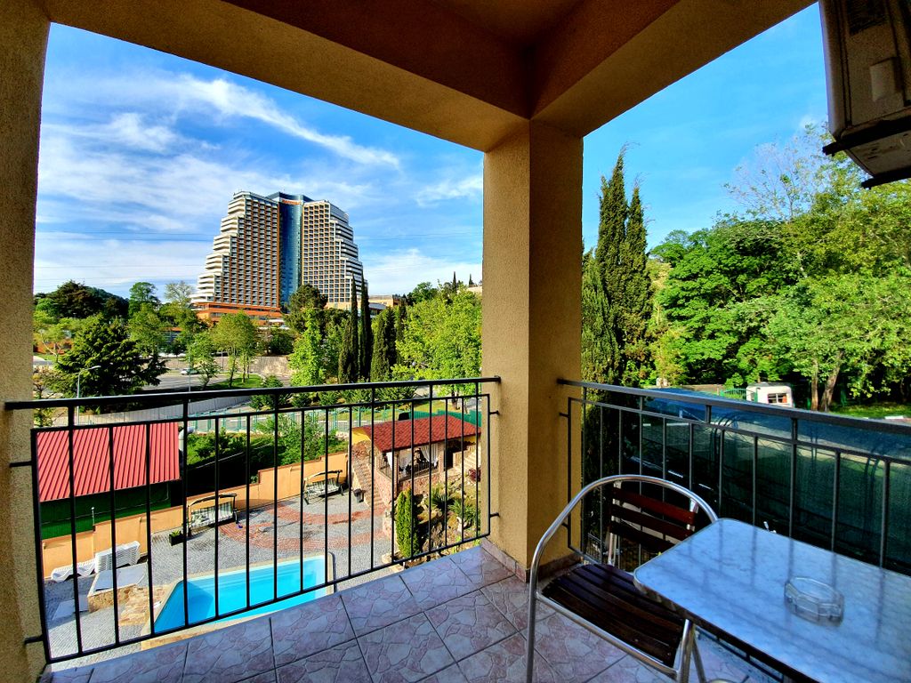 Гостевой дом «Атлант» расположен в поселке Дагомыс, в 9 км от центра г. Сочи, забором граничит с оздоровительным комплексом Управления делами Президента РФ «Дагомыс». Здесь прохладнее ночью, потому что по долинам двух рек спускаются воздушные потоки и приносят свежесть. С черкесского языка слово «Дагомыс» переводится «прохладное, тенистое место». К услугам гостей сезонный открытый бассейн с видом на море, с зоной и лежаками для загара, а также принадлежности для барбекю, мангалы, уютная беседка, детские качели, теннисный стол, бесплатный Wi-Fi на всей территории. Расстояние до аэропорта Адлер-Сочи составляет 41 км. Место отлично подходит как для романтичного отдыха на двоих, так и для семейного отпуска. Здесь лучшее соотношение цены и качества в микрорайоне Дагомыс! По сравнению с другими вариантами в этом микрорайоне, гости получают больше за те же деньги. Для тех, кто хочет отдохнуть с максимальным комфортом и не потратить много денег, лучше поехать сюда.