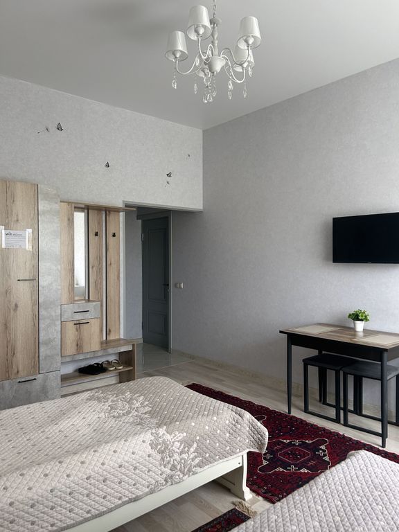 Приветствуем Вас в Гостевом доме на Дюма 28. У нас сдаются 3 двухместных однокомнатных номера и 1 двухкомнатный на четыре спальных места. Доехать до нас очень просто. На личном авто это займет у вас минуты 3 после въезда в город. От городской автостанции минут 5 пешком, а от остановки электрички минут 15 пешком (можем встретить вас и довезти до гостиницы). Спокойный, тихий район - частный сектор. Имеются номера как с двуспальными кроватями, так и с раздельными односпальными. В каждом номере кроме удобных спальных мест отдельная ванная, санузел, кондиционер, телевизор (SmartTV), интернет, холодильник, фен, банные и кухонные принадлежности. В общей доступности стиральная машина, утюг, микроволновка и плита. В услуги гостевого дома не включено питание, но в номерах есть кухонные принадлежности и во внутреннем дворике оборудована зона барбекю на которой вы можете приготовить себе вкусный шашлычок. В шаговой доступности все достопримечательности города. До моря 15 минут, до городского пляжа
