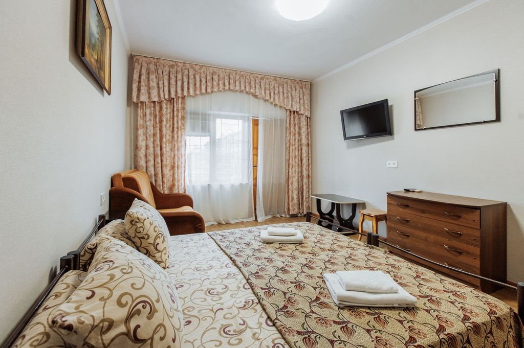 «Лазурь» расположен в Курортном городке Адлера, в 5-ти минутах прогулки до прекрасных, оборудованных пляжей. Рядом с гостевым домом множество различных столовых, кафе и ресторанов. Два бассейна - один большой с подогревом и поменьше с обычной водой. Возле обоих бассейнов вы сможете принимать солнечные ванны на удобных лежаках. В шаговой доступности находится Дельфинарий и Океанариум, а также остановка, с которой вы сможете легко добраться до любых достопримечательностей Сочи и Адлера. В уютном дворике гостевого дома установлены столики, где вы сможете отдохнуть вечером от дневной суеты, перекусить. Территорию гостевого дома украшают великолепные, раскидистые пальмы, кипарисы, различные плодовые деревья, виноградные лозы и прекрасные южные цветы. Наши гости могут пользоваться оборудованной кухней для самостоятельного приготовления пищи. К услугам гостей – бесплатные гладильные принадлежности и прачечная. Все номера благоустроенные, оснащены кондиционером и телевизором с плоским экрано
