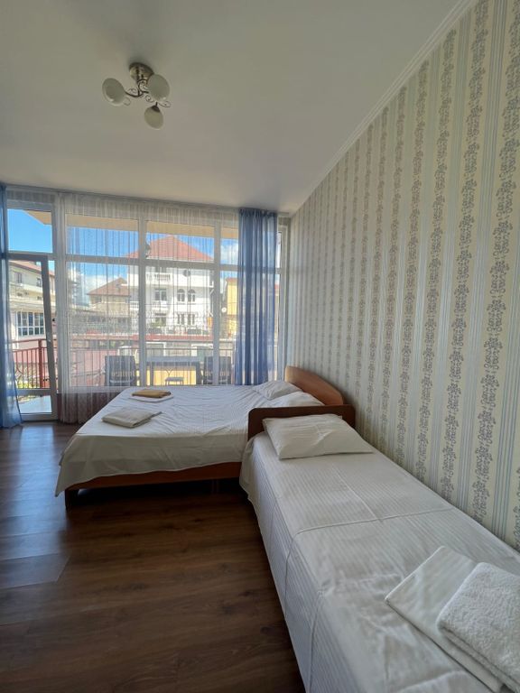 Гостевой дом находится в спальном районе, в 5-ти минутах ходьбы от моря. Остановка общественного транспорта в 2-х минутах ходьбы, во все направления (Сочи, Адлер-центр, Сириус (олимпийский парк), Красная поляна). Красная поляна в часе езды; ж/д вокзал в 10-ти минутах езды; аэропорт в 20-ти минутах езды. Номера все с удобствами: душ, туалет, телевизор, кондиционер, холодильник. В зимнее время работает отопление. Имеется кухня для самостоятельного приготовления пищи; гладильные принадлежности. Большой просторный двор. Проживание от 3-х дней